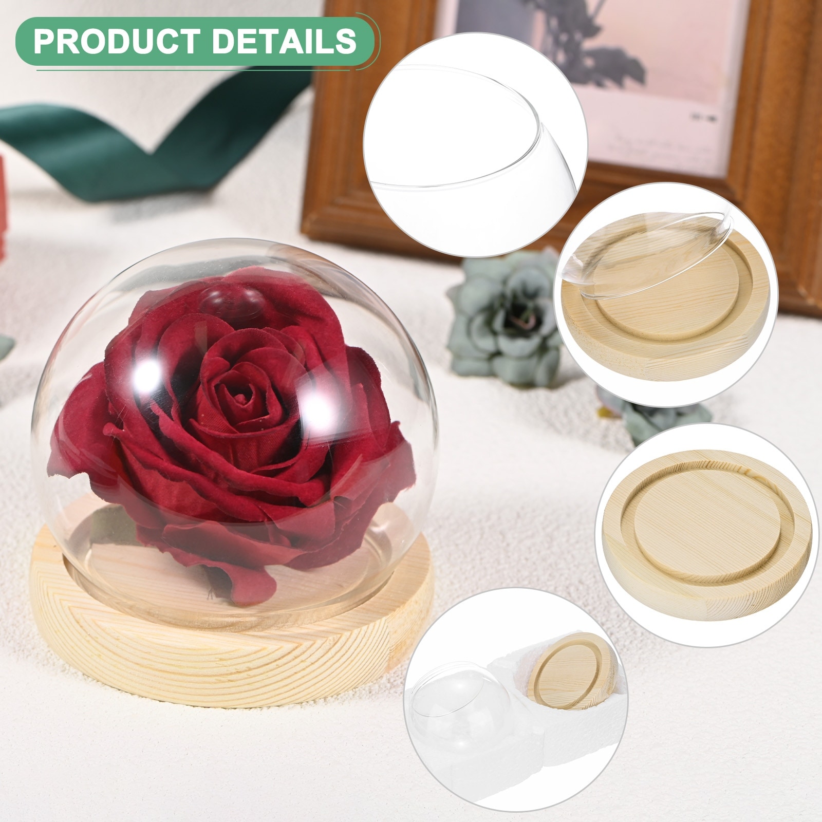 Cloche Glass Dome, D4.7In Ball Jar with Wooden Base for Small Plants [Wood]