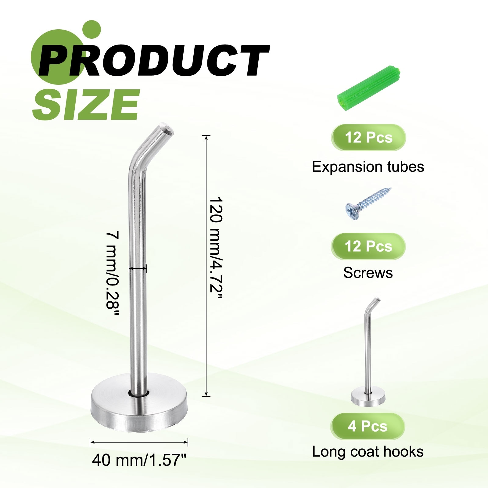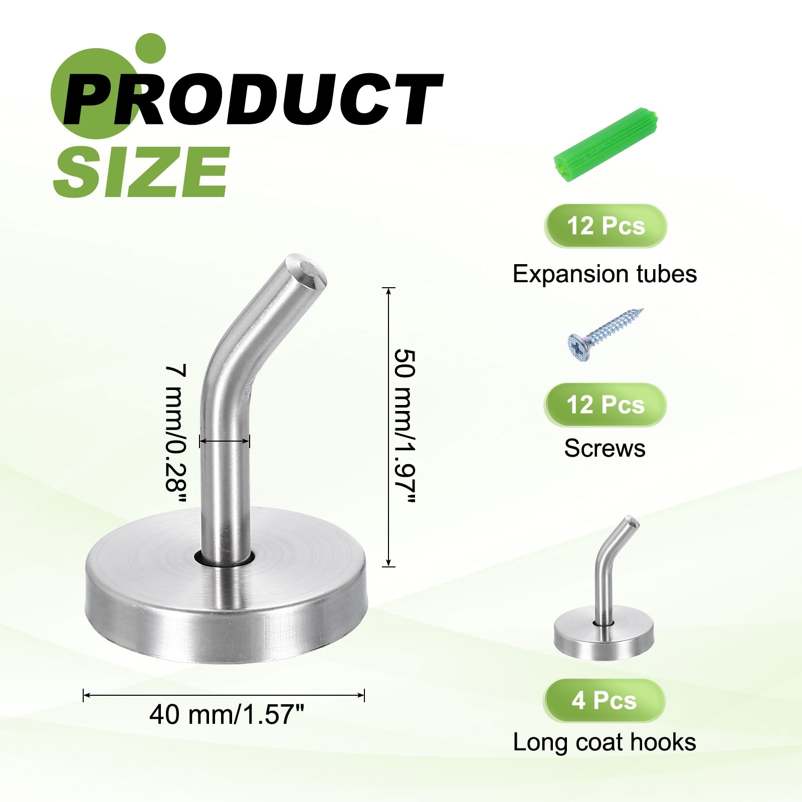Coat Hooks, Stainless Steel Long Nose Wall Mount Hook