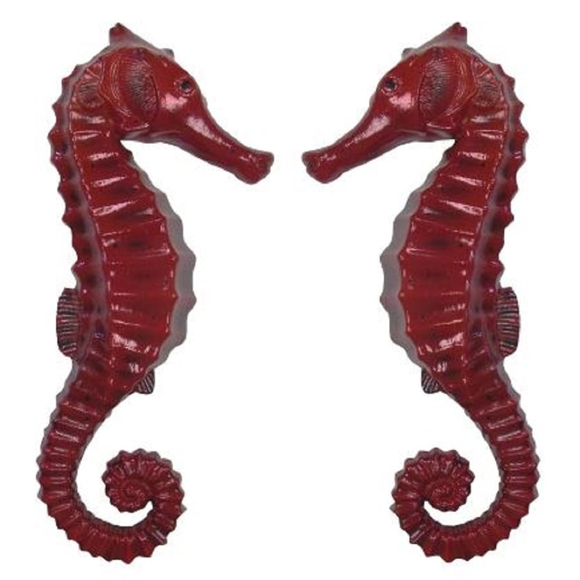 Coastal Seahorses Wall Decor Red 9 Inches Set of 2