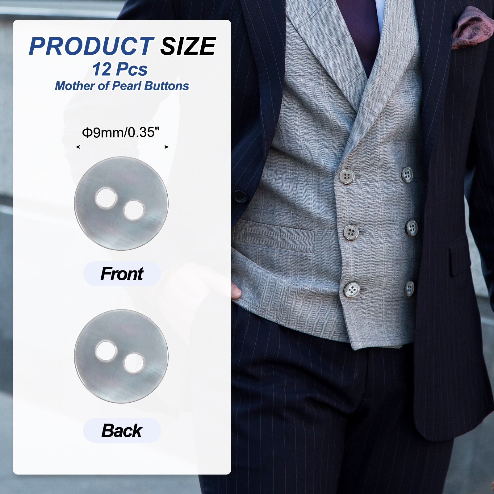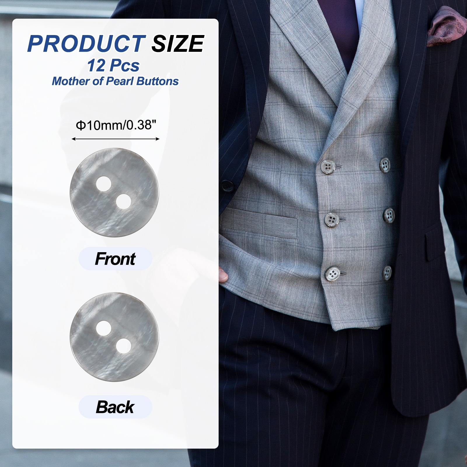 Mother of Pearl Buttons, MOP Natural Pearl Shell Buttons for Sewing Clothes Coat Suits Shirt DIY Craft Decoration - Gray