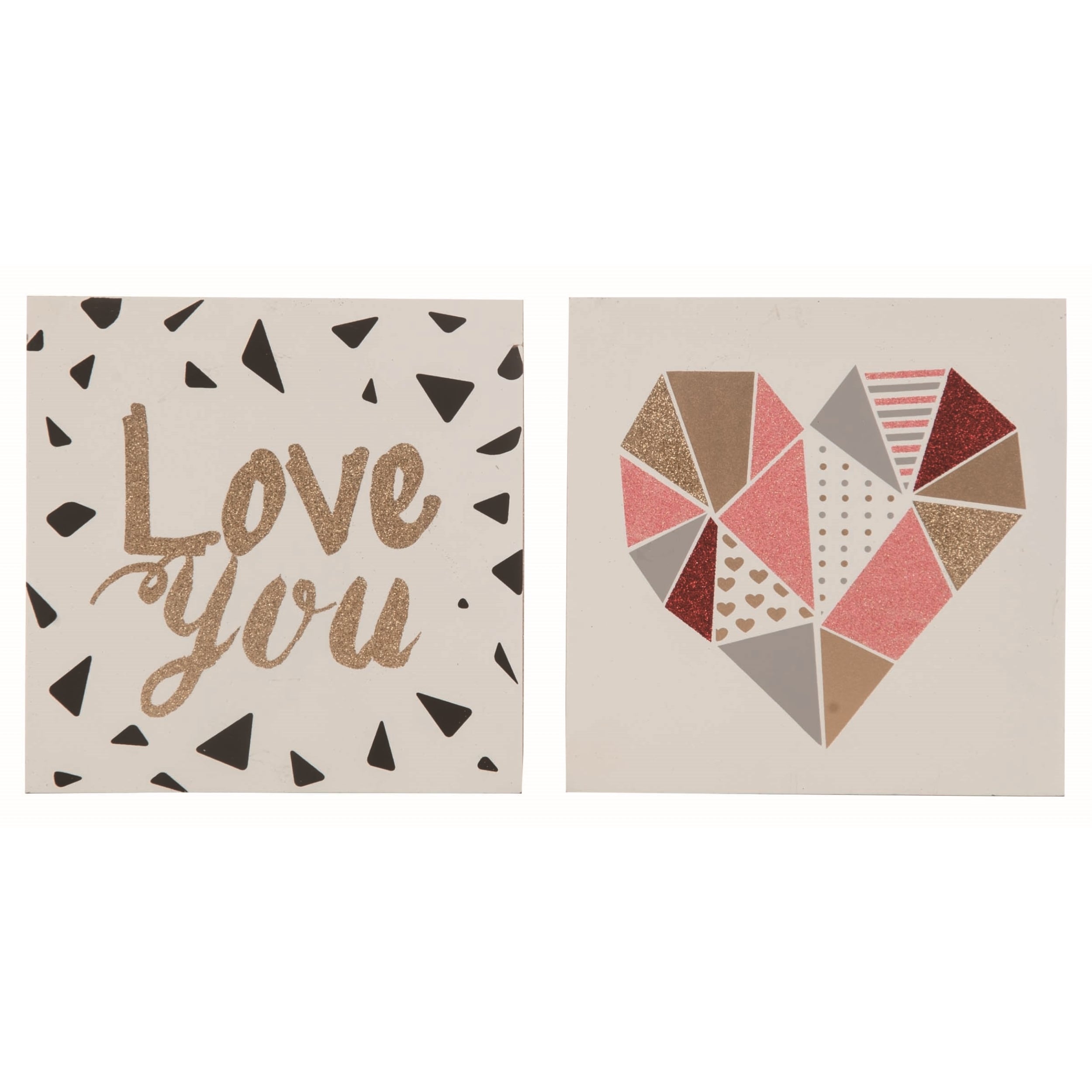 Transpac MDF Modern Glitter Valentine Block Tabletop Mantel Sign Set of 2, Square, 8.0 x 8.0 inch