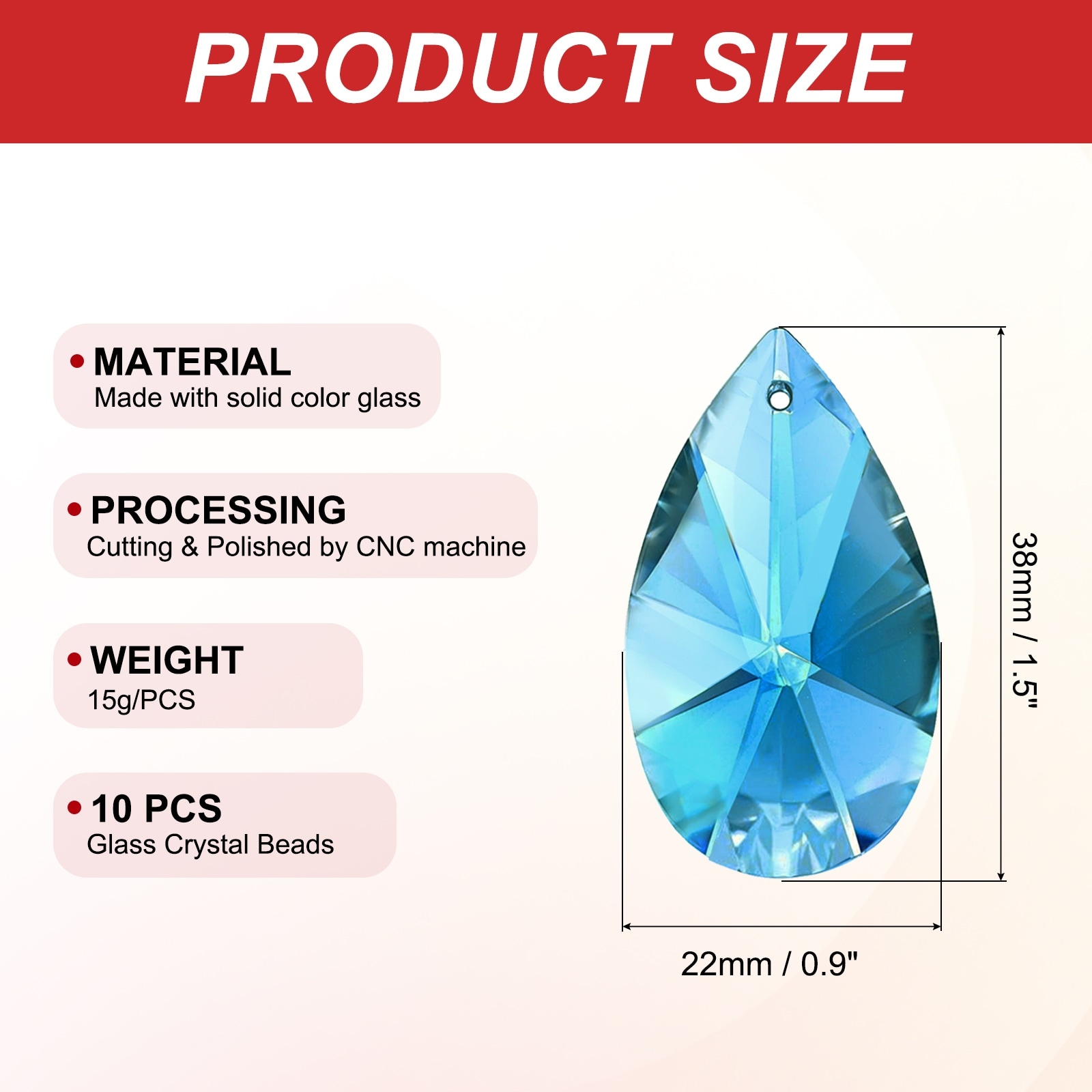 K9 Crystal Pendants Teardrop Beads, Chandelier Prisms Parts Hanging Leaf Beads DIY Lamp for Crafts Decoration - 38mm