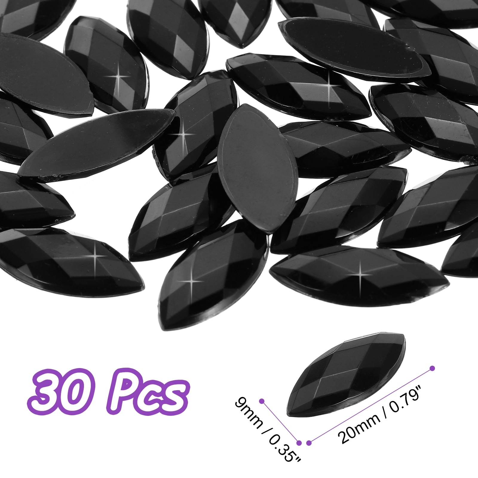 30 Pcs Acrylic Horse Eye Gems, Dark Blue 20x9mm Flat Back Crystal Rhinestones