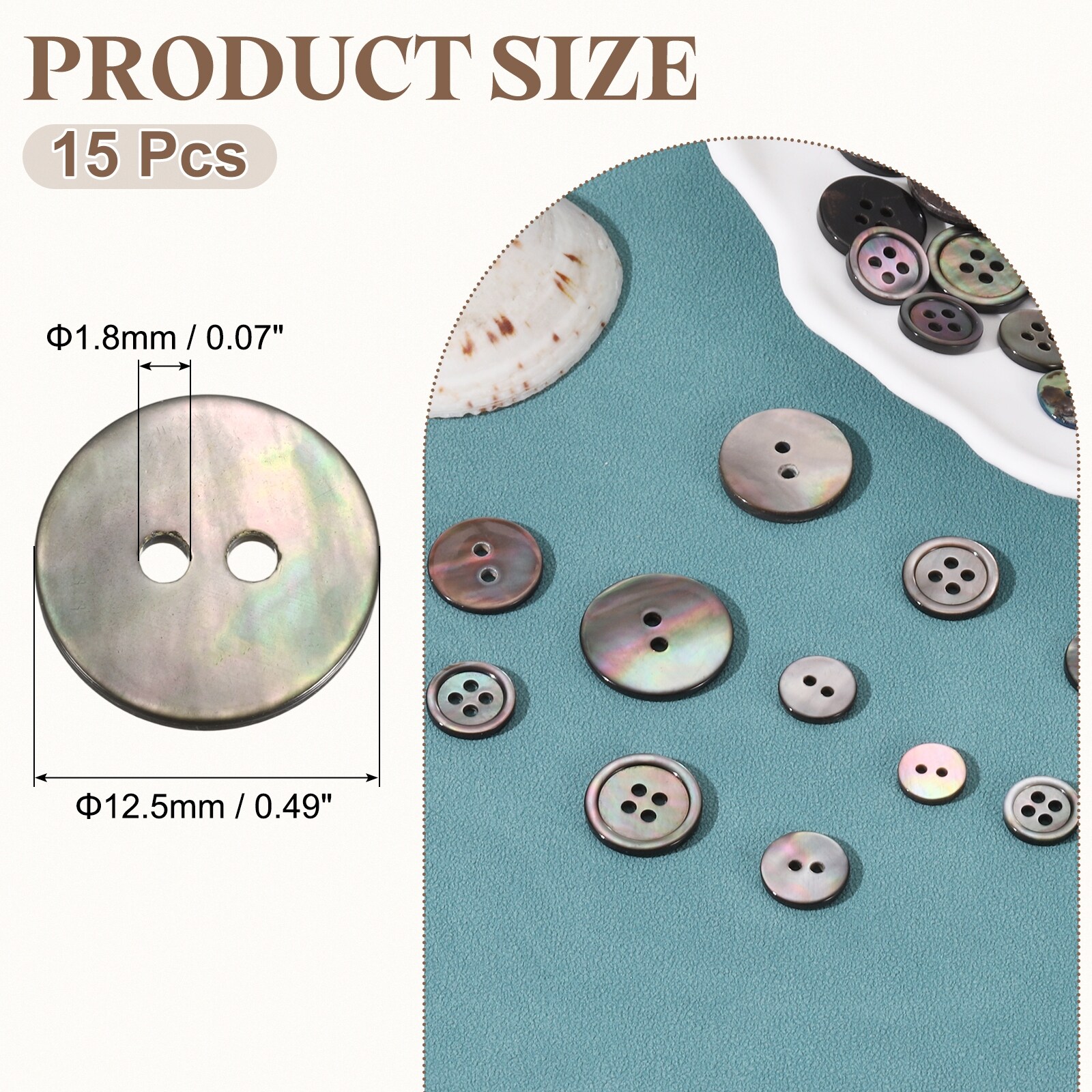 Natural Shell Button, Mother of Pearl Button for Shirt Coat Suits Jacket Jeans Skirts DIY Sewing Craft - Black/Silver