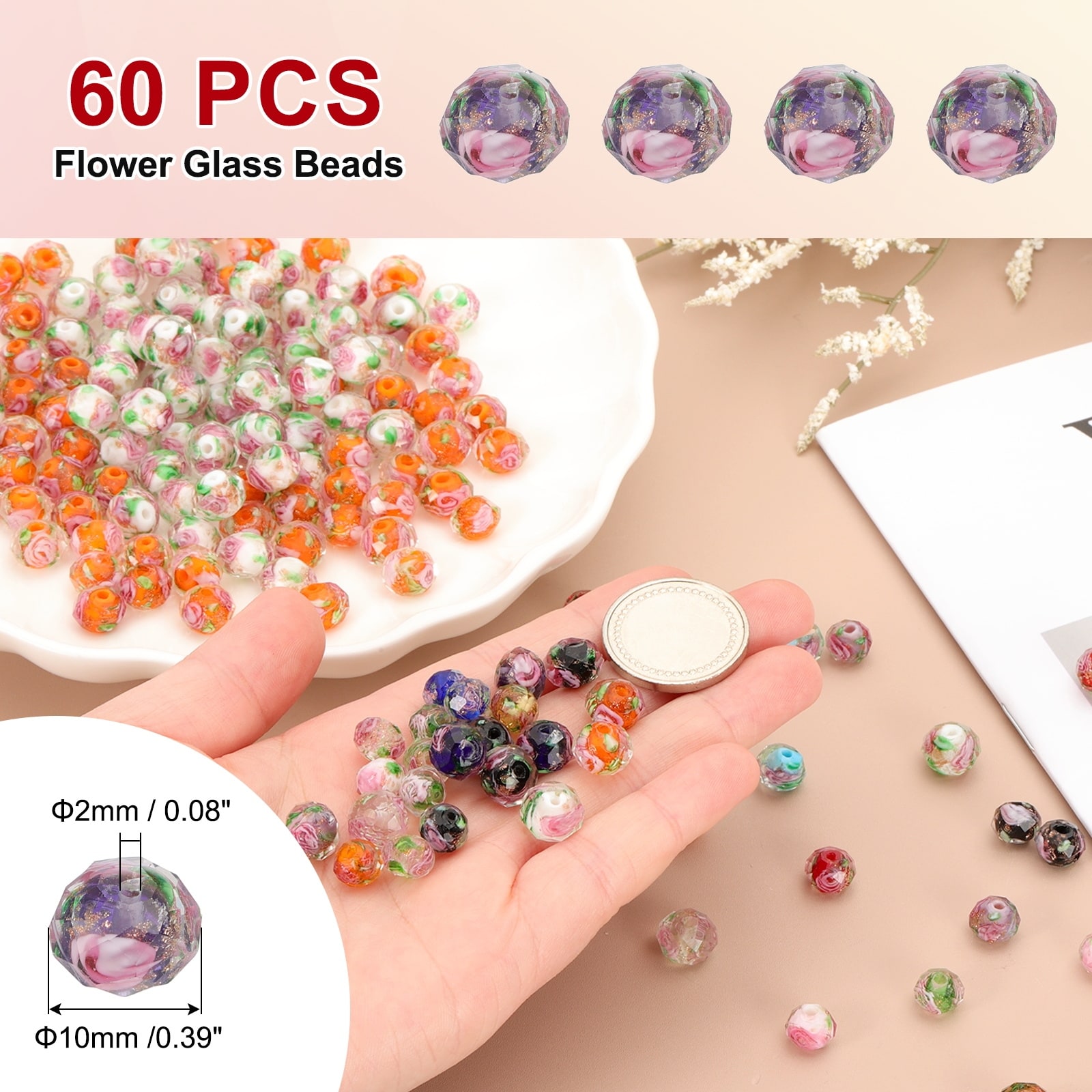 10mm Flower Glass Beads, 60Pcs Handmade Gold Sand Floral Bead Faceted, Gold Tone