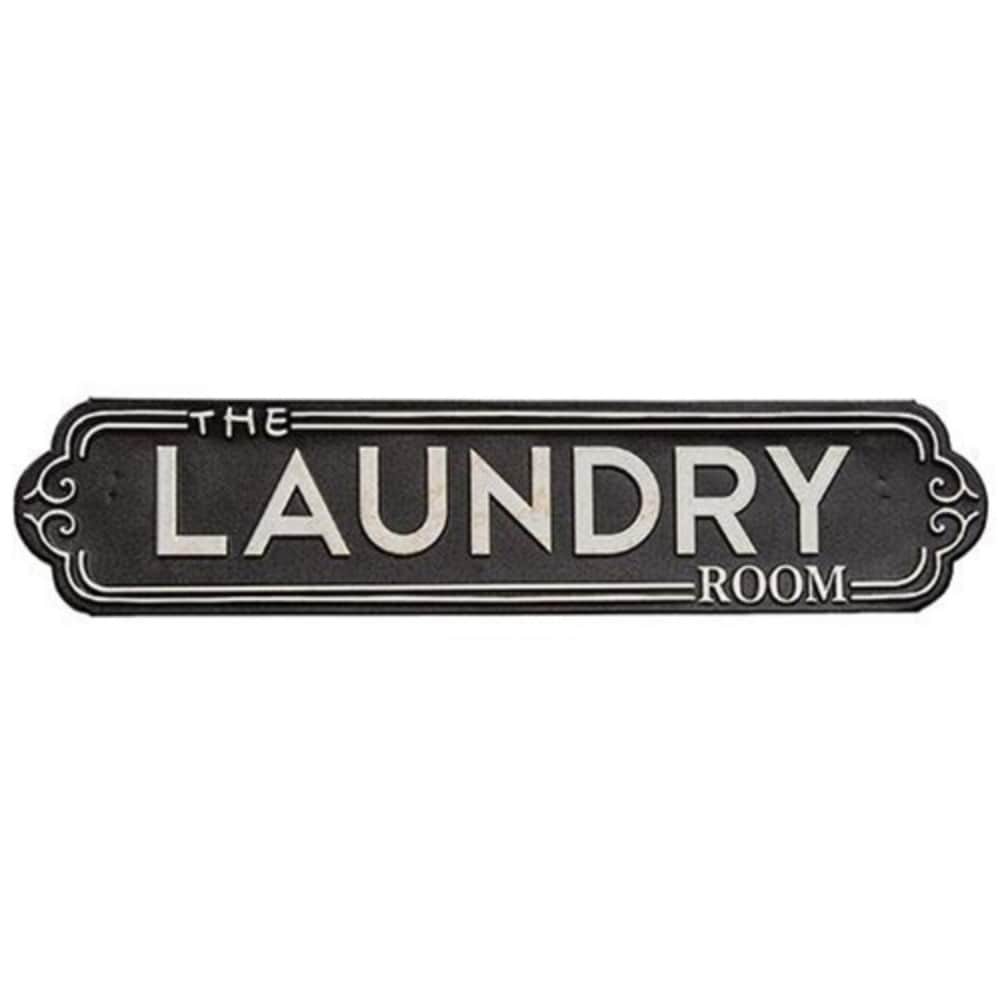 18x4 Inch Black Metal Laundry Room Sign with Raised White Border and Wall Hooks for Wall Decor - 4”L x 18”W x 0.25”H
