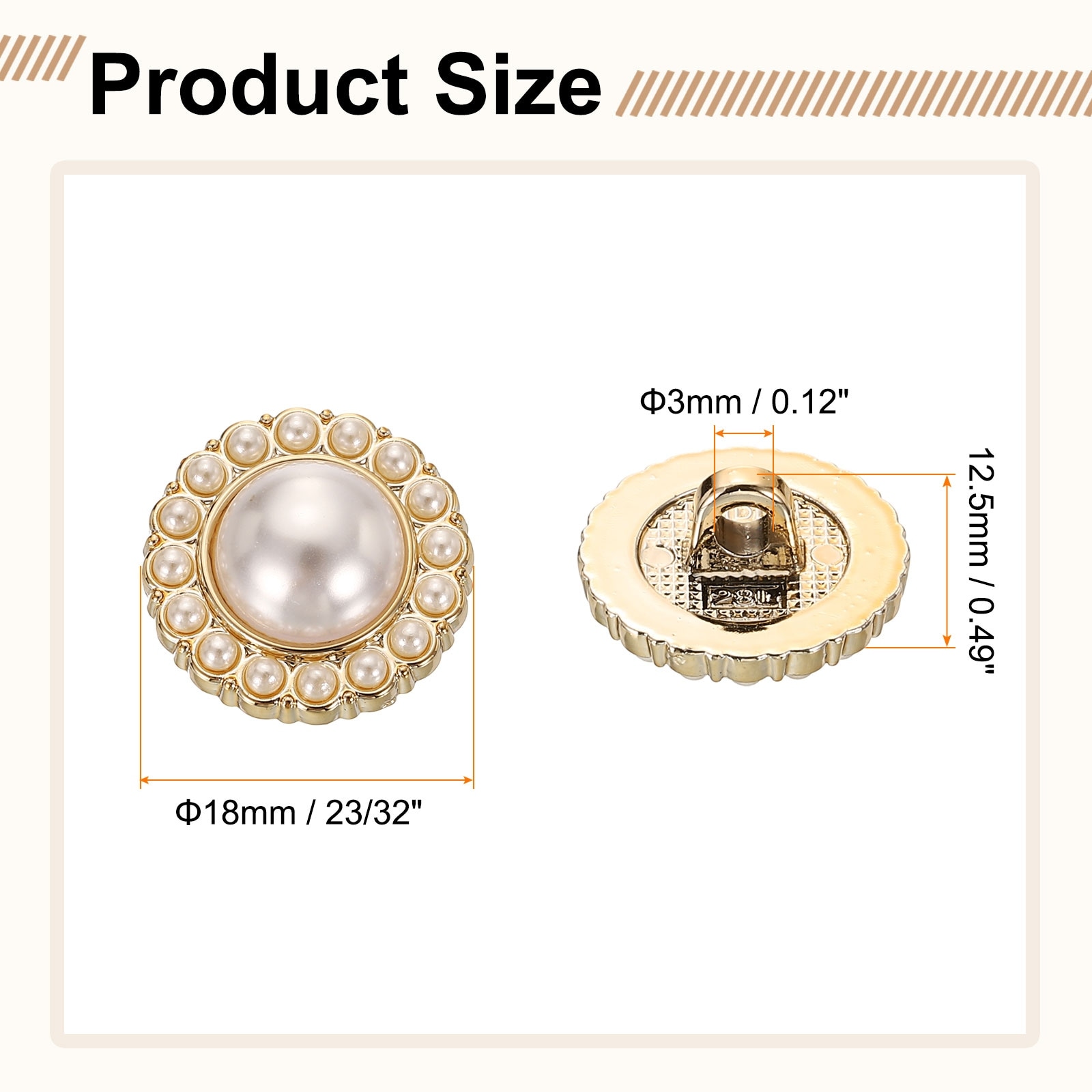 Faux Pearl Buttons Plastic Round Sewing Button Replacement Fastener for Coats DIY Decoration Crafts - Gold-White