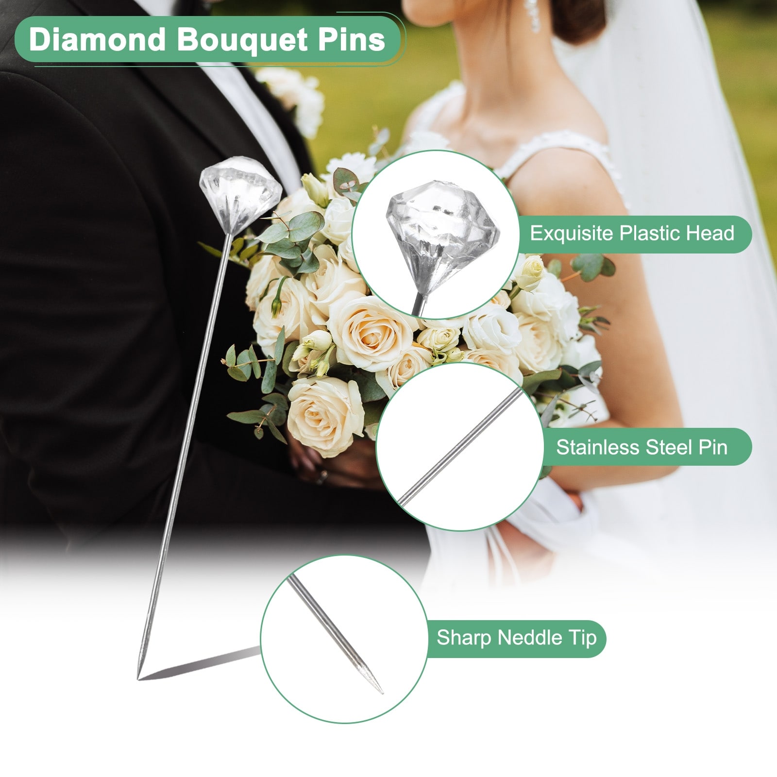 Corsage Boutonnieres Pins, Clear Diamond Floral Straight Pin for Wedding/Jewelry