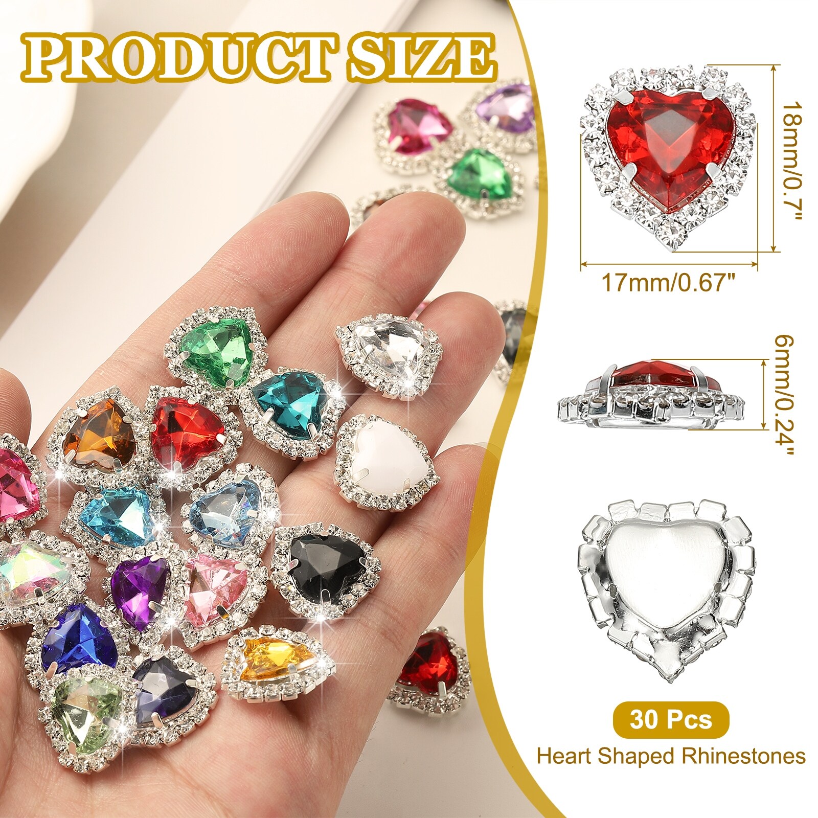 PCS Heart Rhinestones, Sew on Heart Rhinestones Buttons Crystal