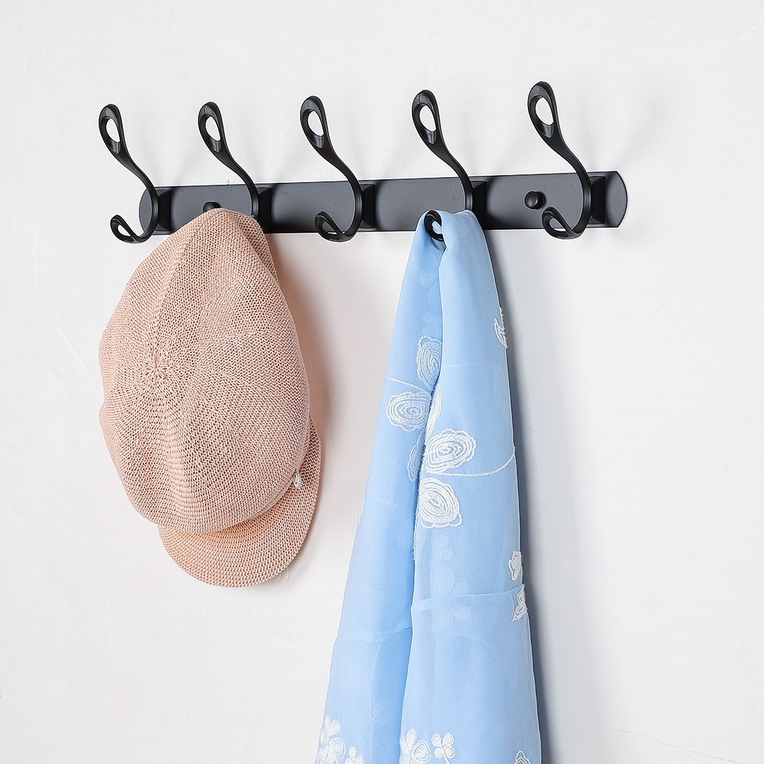 Dual Wall Hooks Stainless Steel Base 17.7" 5 Hooks Cloth Towel Holder - Black - 17.7" x 2.8" x 3.7"(L*W*H)