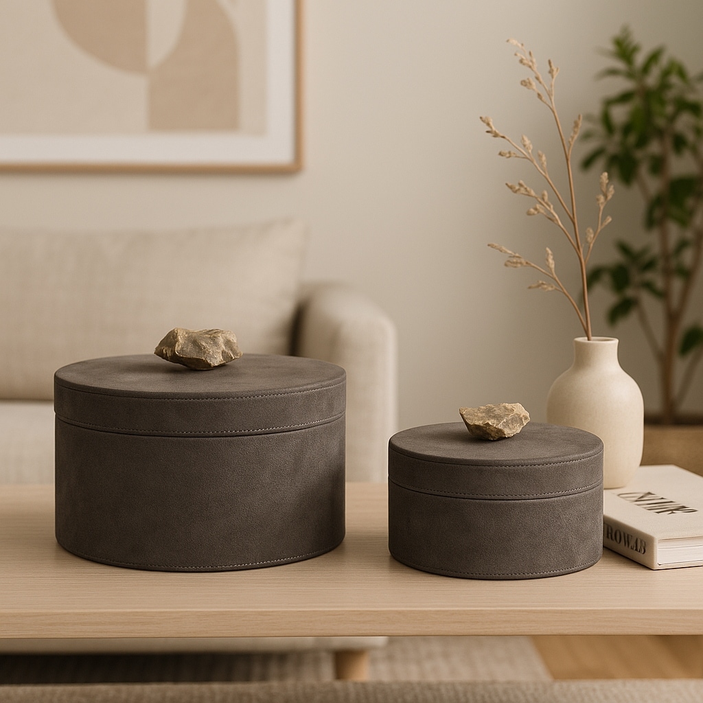 Wood Keepsake Box Stone Knob Lid Elegant Storage (Set of 2) - 5" Gray - 8" x 8" x 5"