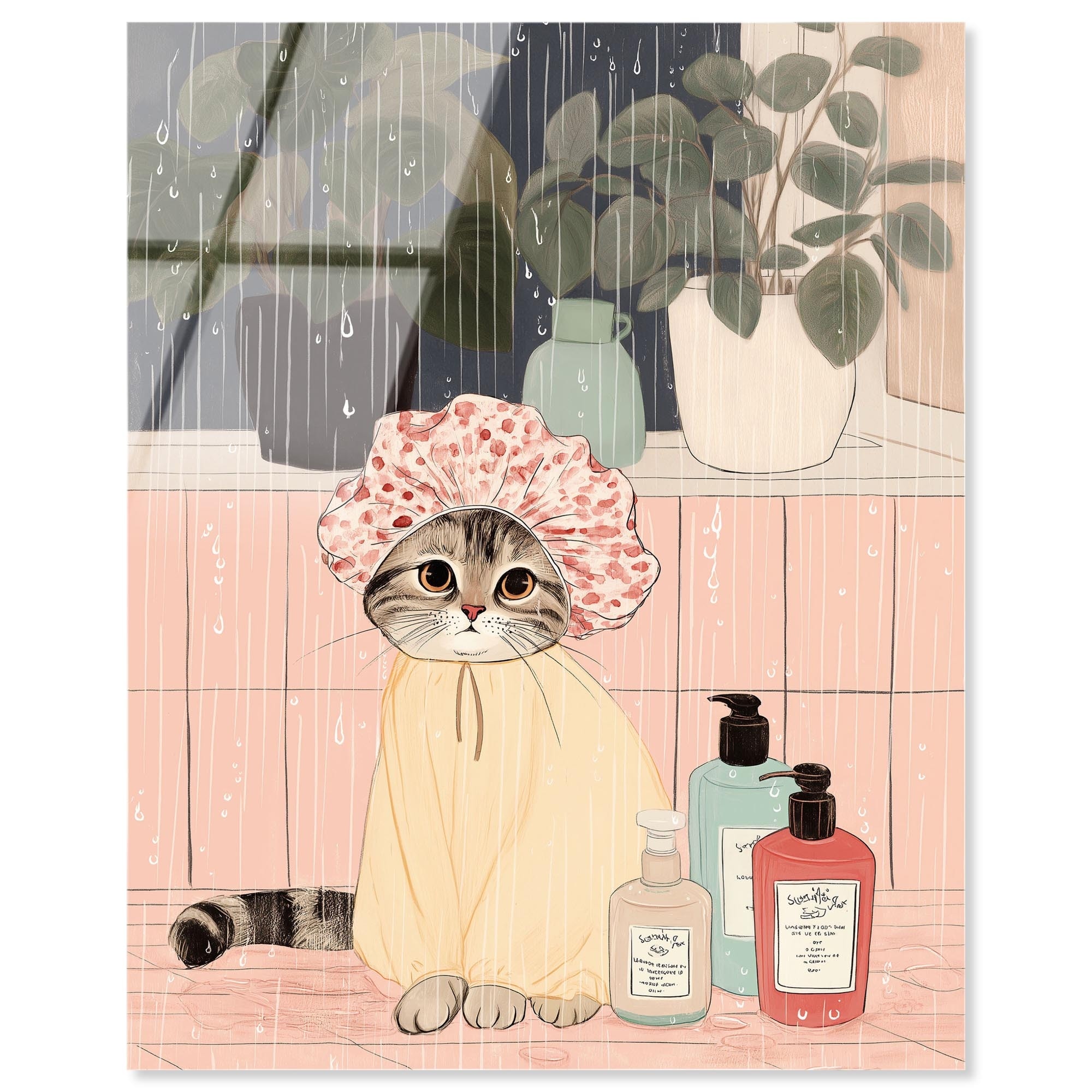 Shower Cat Pets Art Acrylic Print by Art Remedy