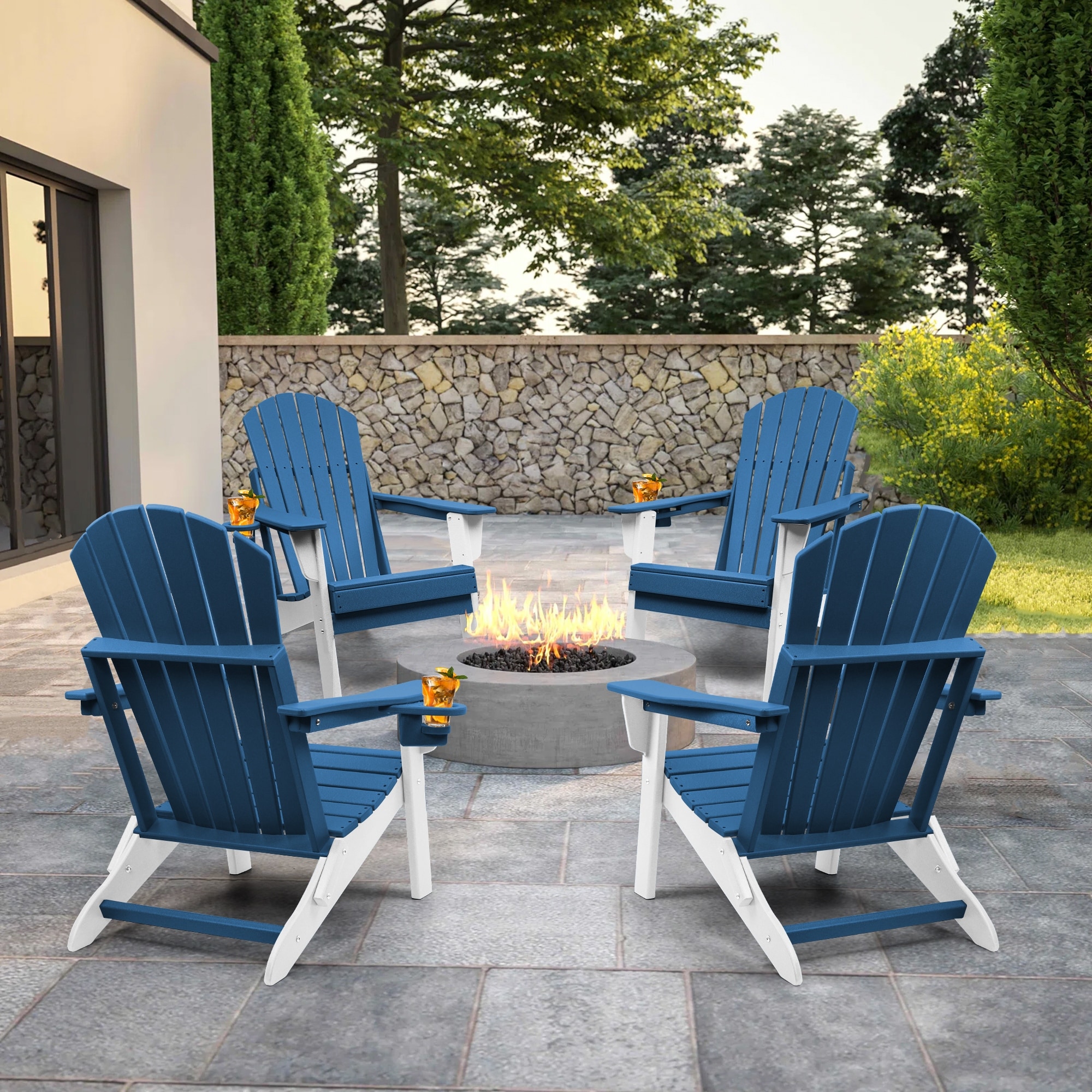 Laguna Hdpe All Weather Outdoor Patio Foldable Adirondack Chairs Conversation Set (5-Piece Set)