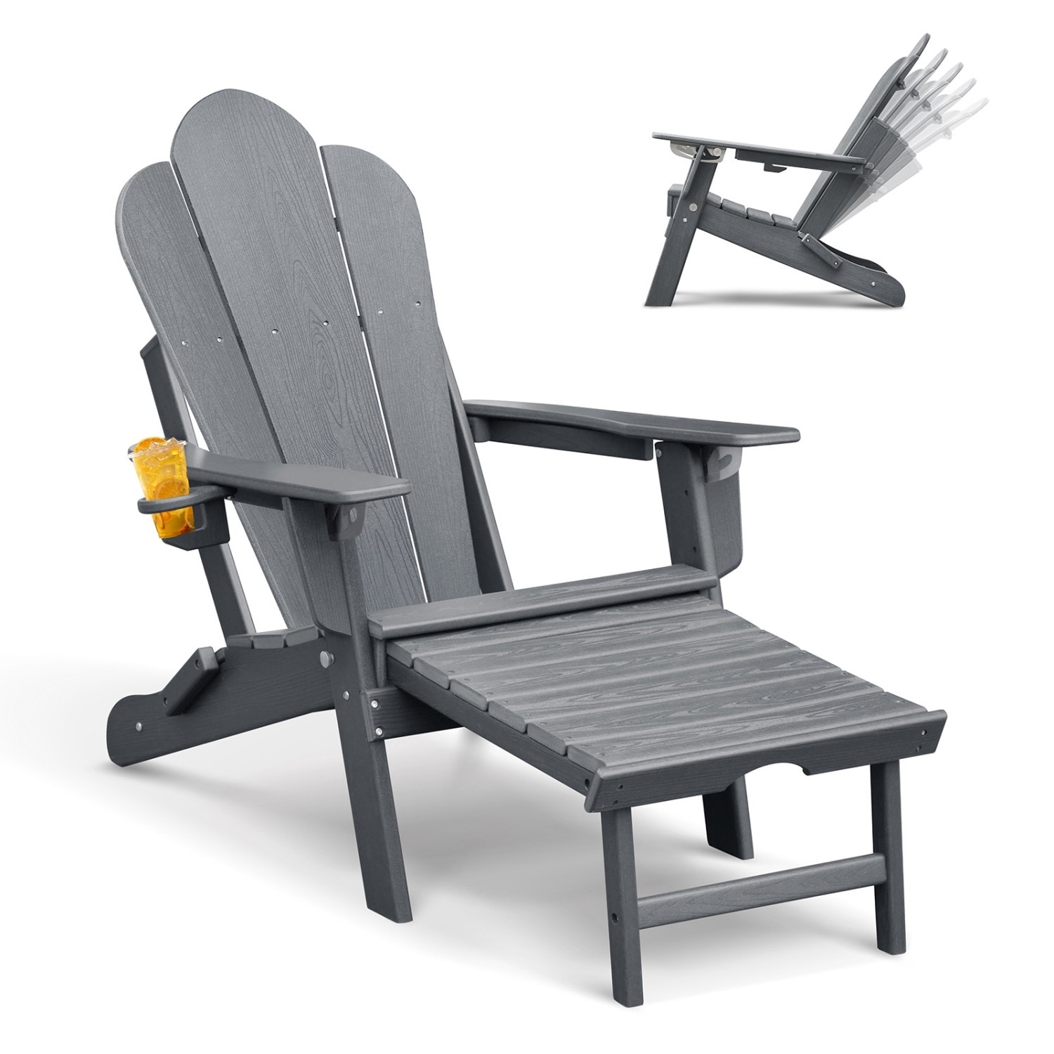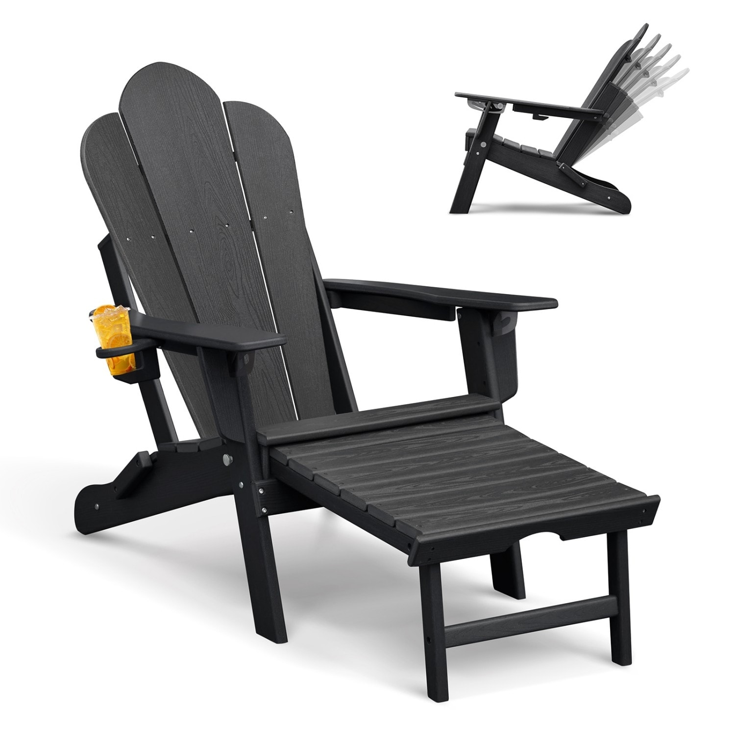 Anmytek Oversized Folding Adirondack Chair with Pullout Ottoman and Cup Holder Weather-Resistant Poly Lumber