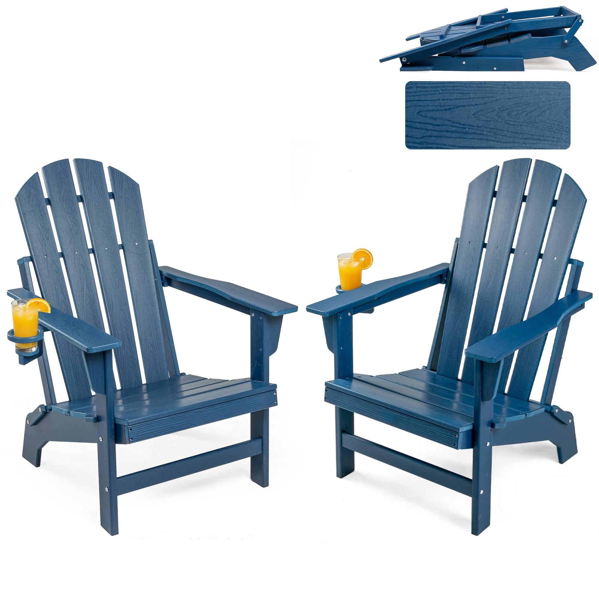 Set of 2 All-Weather HDPE Folding Adirondack Chair For Patios, Decks, Gardens