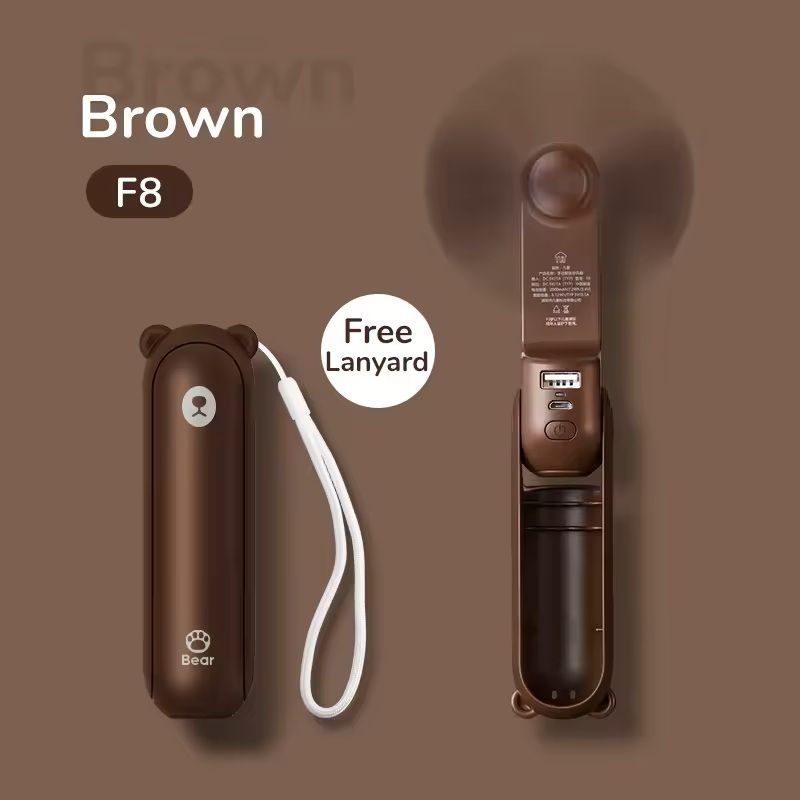 3 In 1 Portable Handheld Fan With Power Bank And Flashlight 2000mah Brown F8