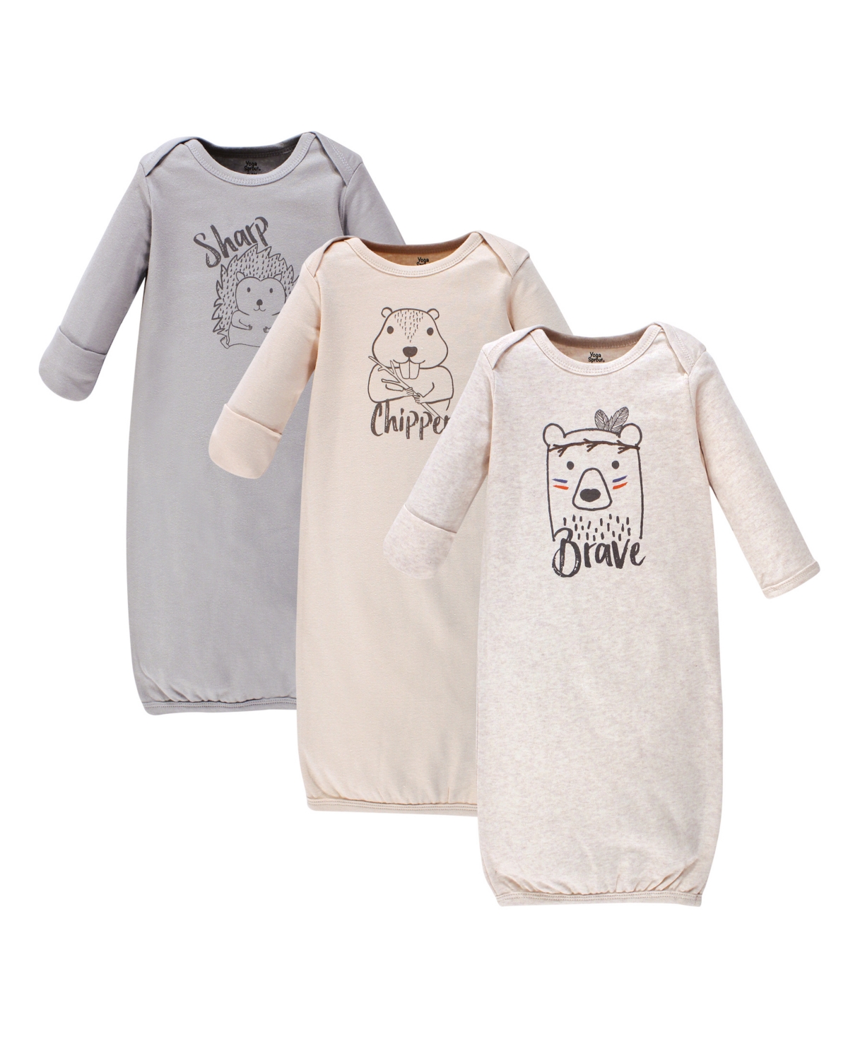 Yoga Sprout Baby Boys Cotton Long-Sleeve Gowns 3pk, Wild - Beige