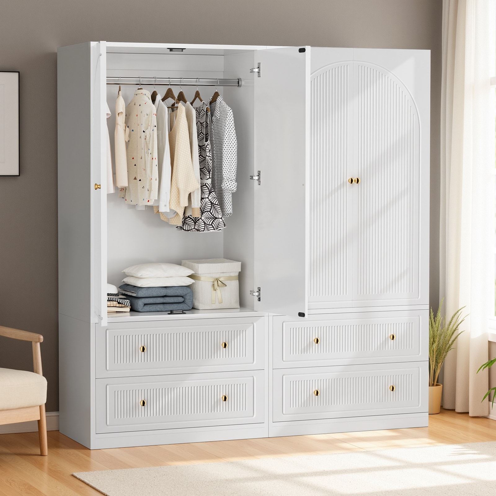 Gyomojoy Large White Wardrobe Closet with Drawers & Doors, Modular Armoire with Hanging Rods, Apartment & Dorm Storage