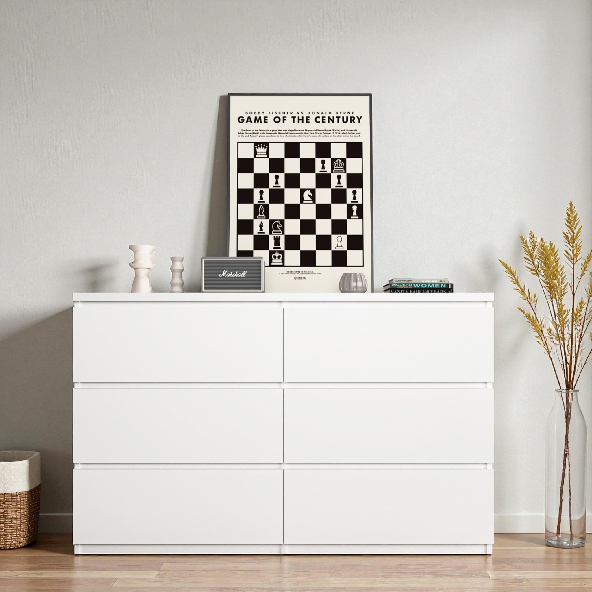 Modern 6-Drawer Dresser Wide Storage Cabinet Wood Clothes Organizer Chest for Bedroom Living Room Entryway Hallway