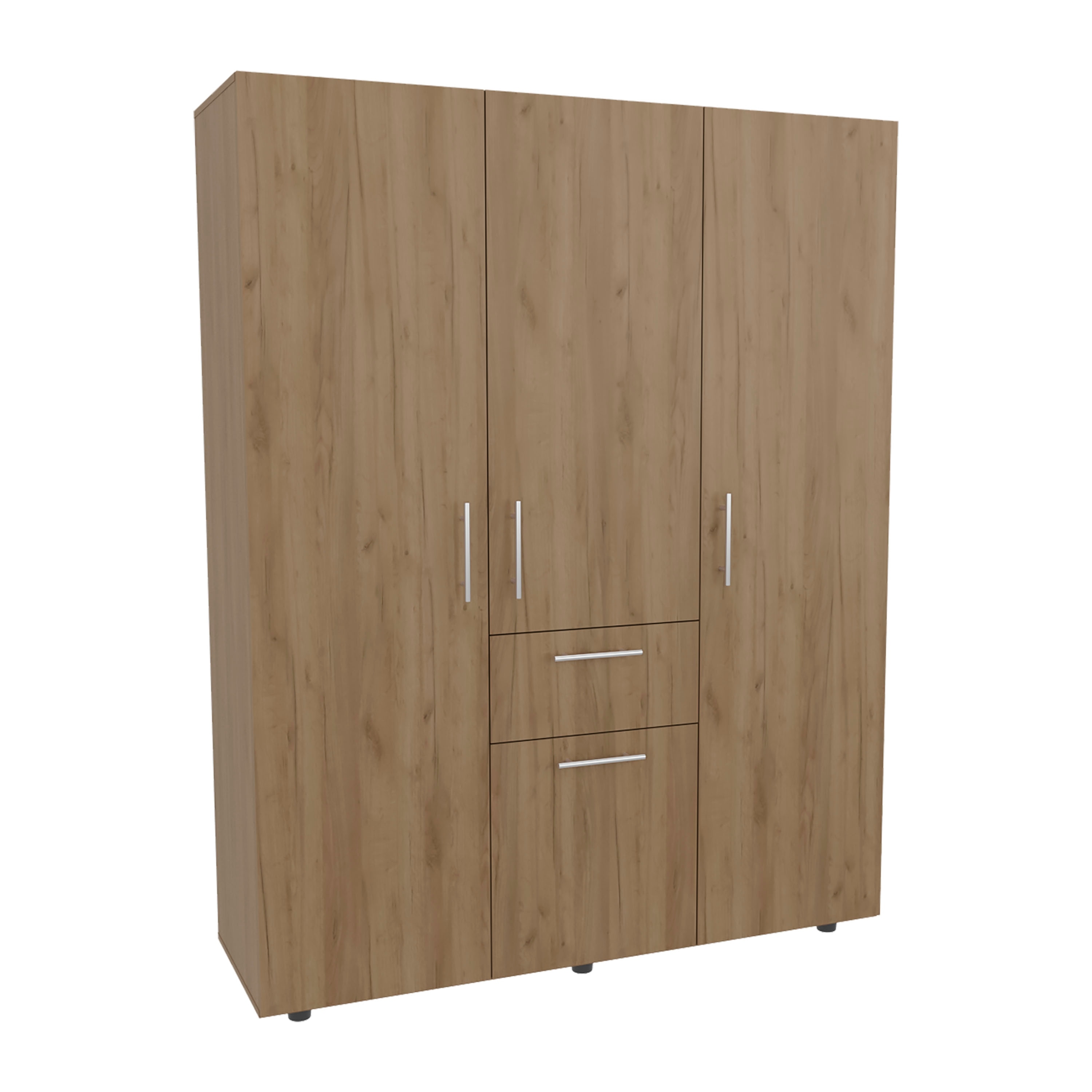 2-Doors Wooden Wardrobe Storage, with Shelves and 3 Drawers,Hanging Rod
