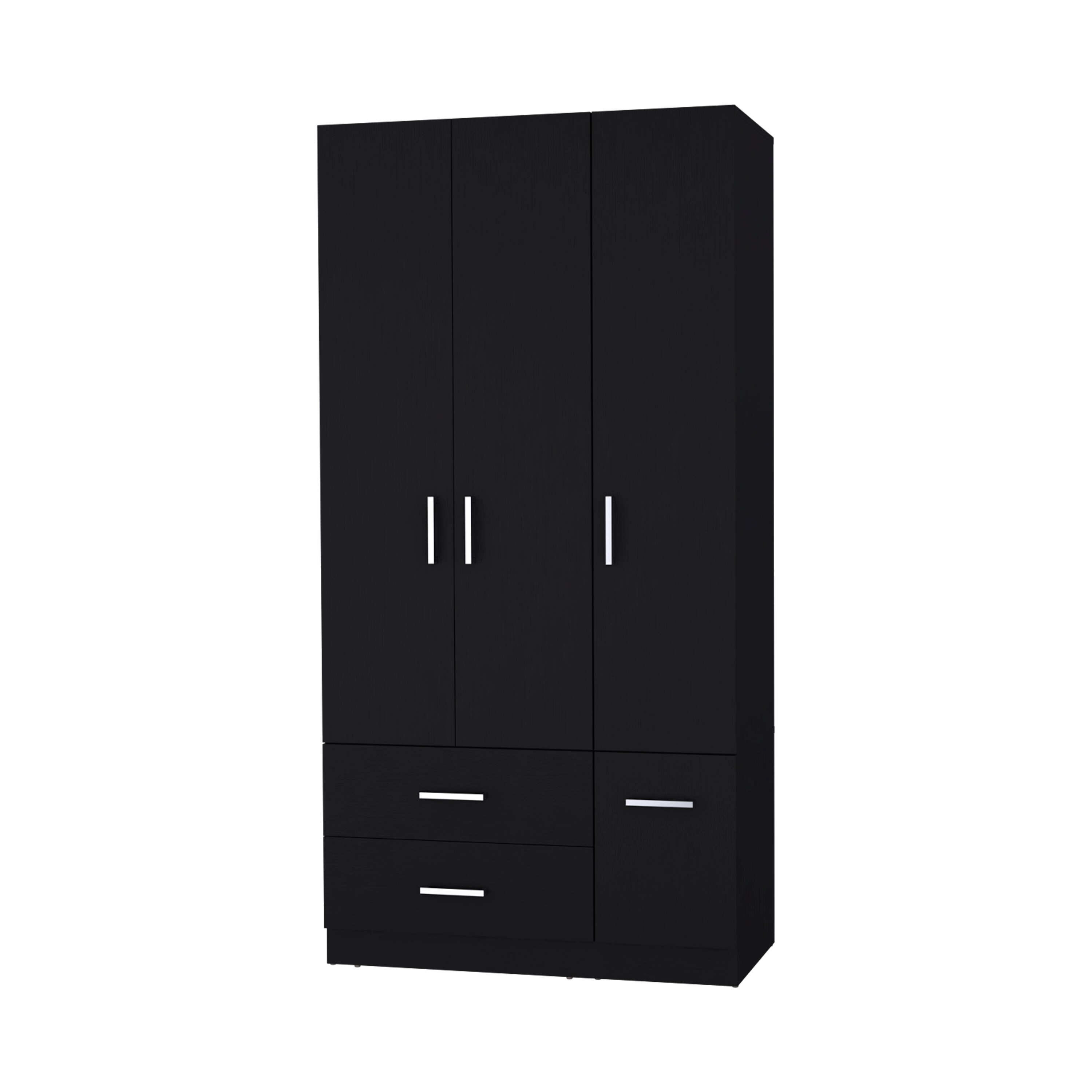 19" Modern Double-door Armoire with Integrated Hanging Rod and Storage Drawers