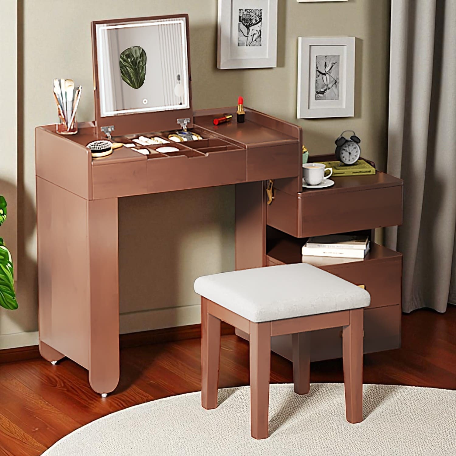 3-in-1 Makeup Vanity Desk with Flip-Top Mirror,LED Lighting,Adjustable Length & Drawers -Multi-Functional Dressing Table.