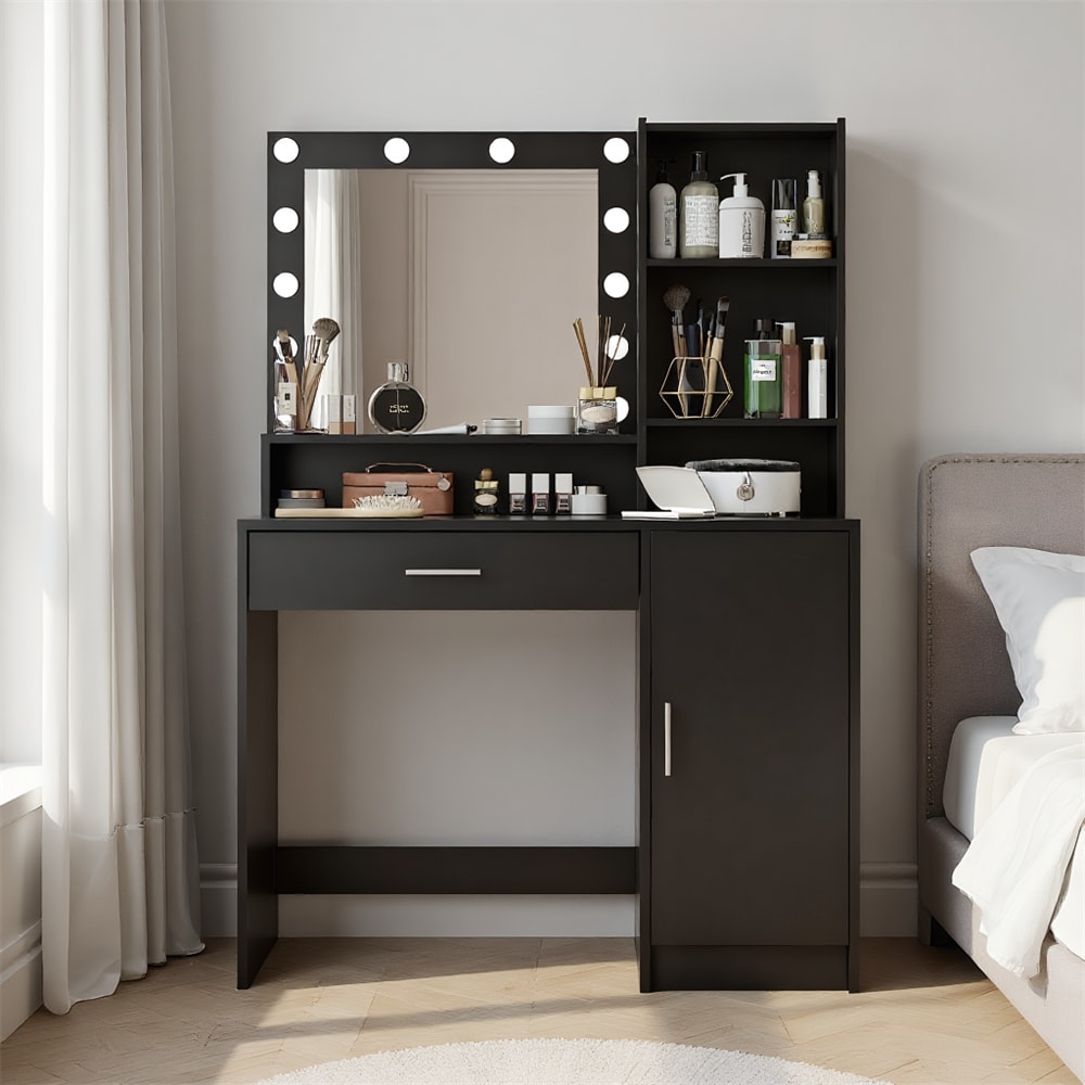 Vanity Desk w/Mirror & Light,Large Drawer Three Level Storage Dresser