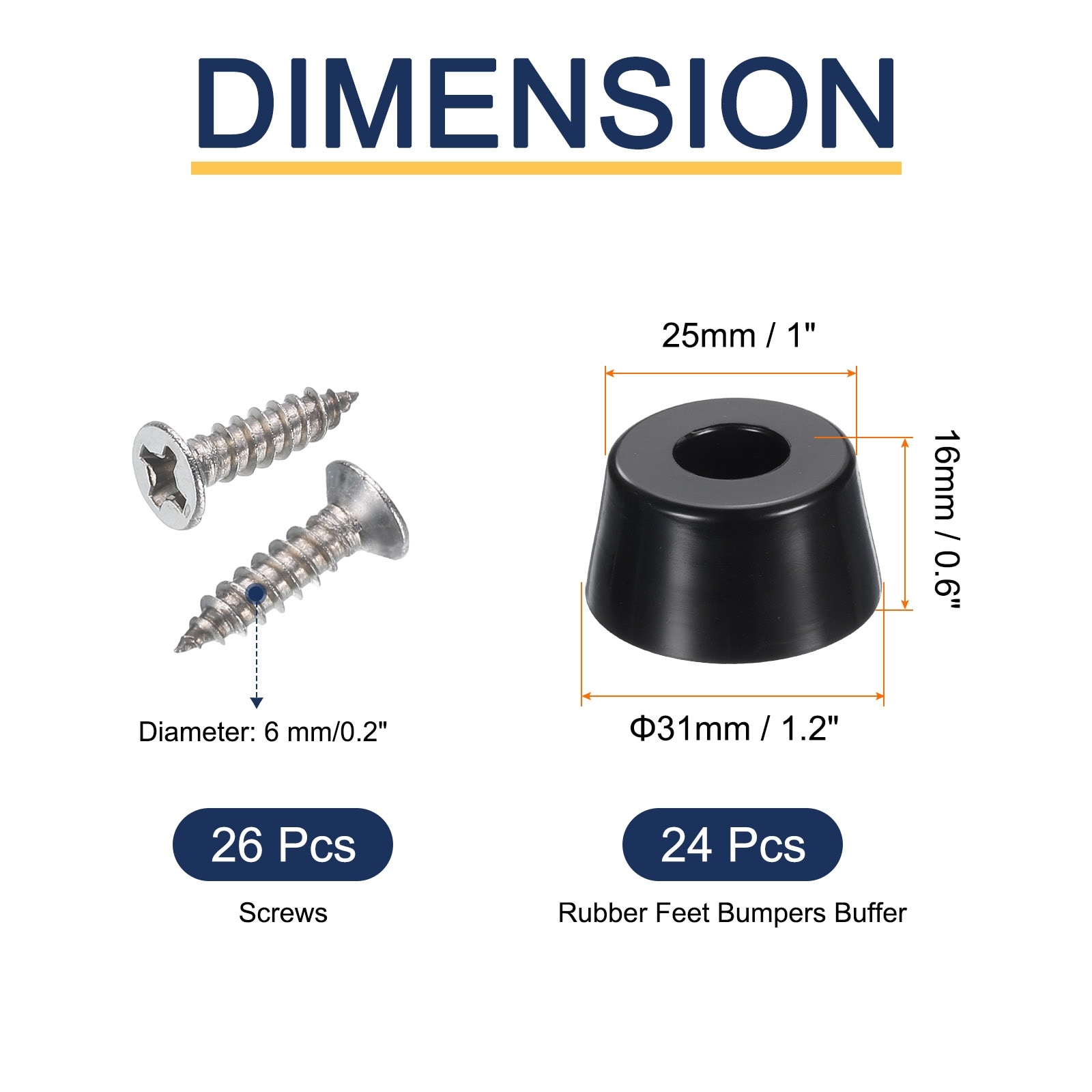 24pcs Rubber Feet Bumpers Buffer with Screws (Black, 0.3"H x 0.5"D)