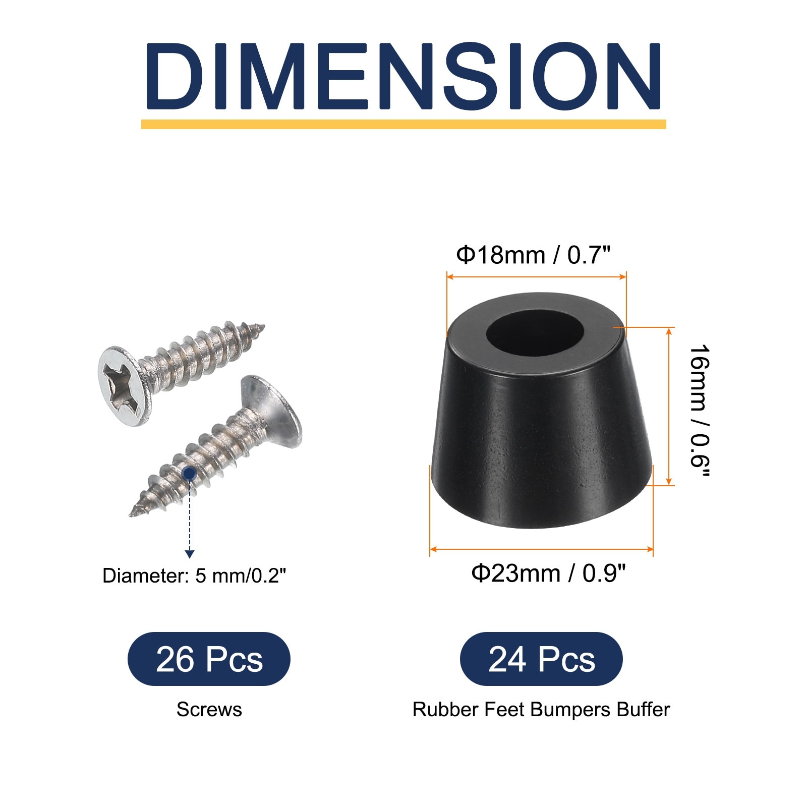 24pcs Rubber Feet Bumpers Buffer with Screws (Black, 0.3"H x 0.5"D)