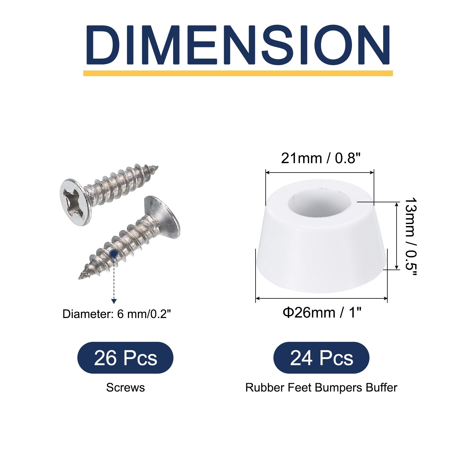 24pcs Rubber Feet Bumpers Buffer with Screws (Black, 0.5"H x 0.8"D)