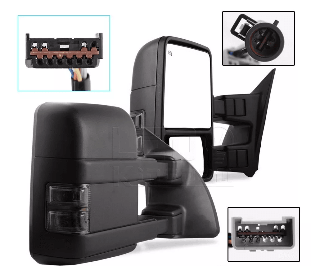 Power Heated Tow Mirrors For Ford Super Duty, Smoke Turn Signal Side Mirrors, Towing Upgrade W Black Shell Power Heated Tow Mirrors For Ford Super Duty, Smoke Turn Signal Side Mirrors, Towing Upgrade W Black Shell