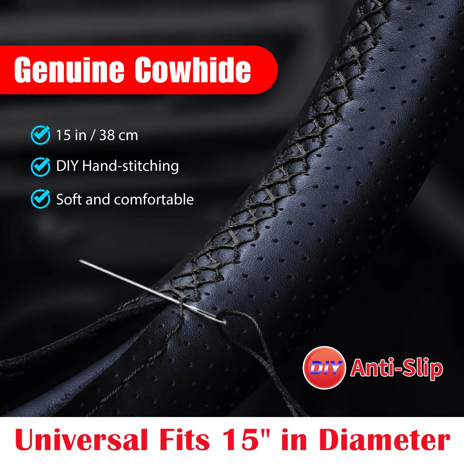 Genuine Leather DIY Car Steering Wheel Cover Anti slip Hand Stitched Wrap Black Universal Interior Accessories Genuine Leather DIY Car Steering Wheel Cover Anti slip Hand Stitched Wrap Black Universal Interior Accessories