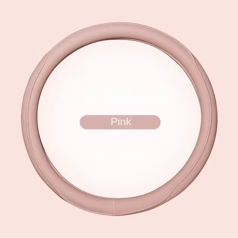 Napa Leather Patchwork Steering Wheel Cover Non Slip Breathable Universal Fit 15 Inch pink