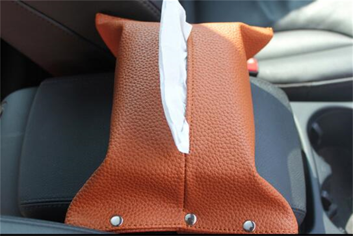 Auto Clip Holder Tissue Box, PU Leather Car Armrest Organizer, Seat Back Paper Napkin Holder Accessory brown