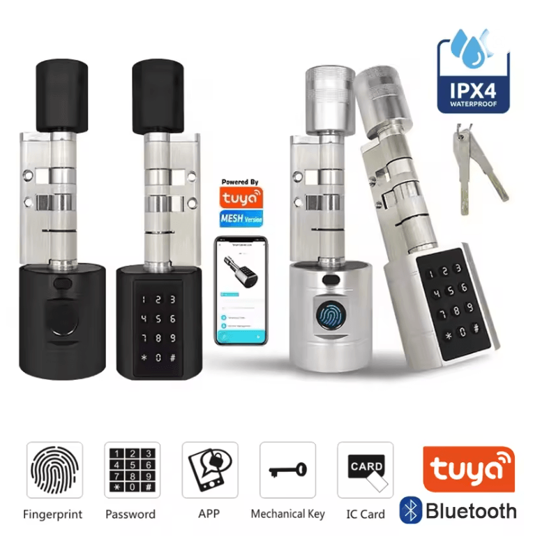 SmartGuard Tuya Fingerprint Cylinder Door Lock silver And Gateway
