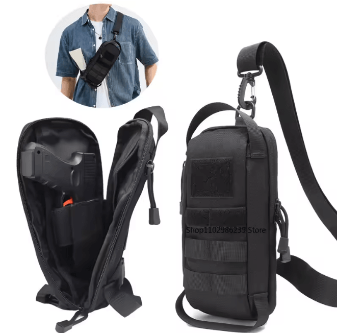 Tactical Shoulder Sling Chest Bag With IWB Pistol Pouch b