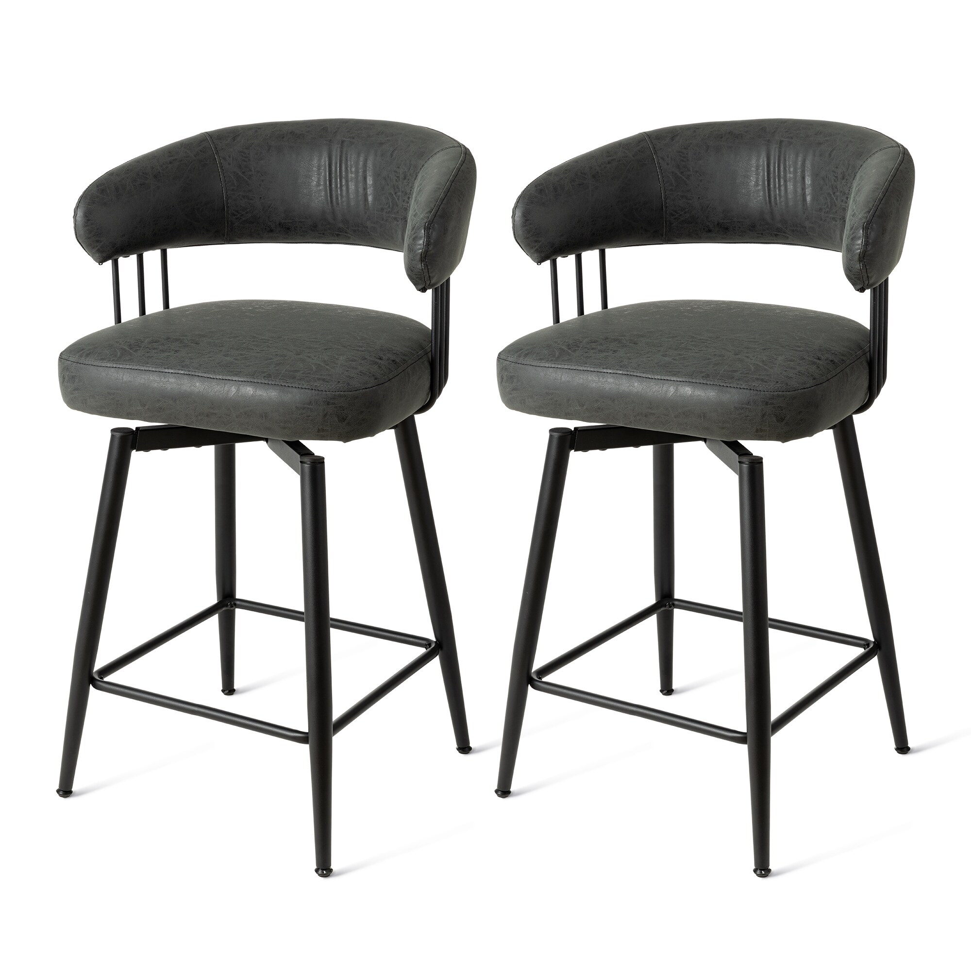 Art Leon Set of 2 Upholstered Counter Height Swivel Barstool