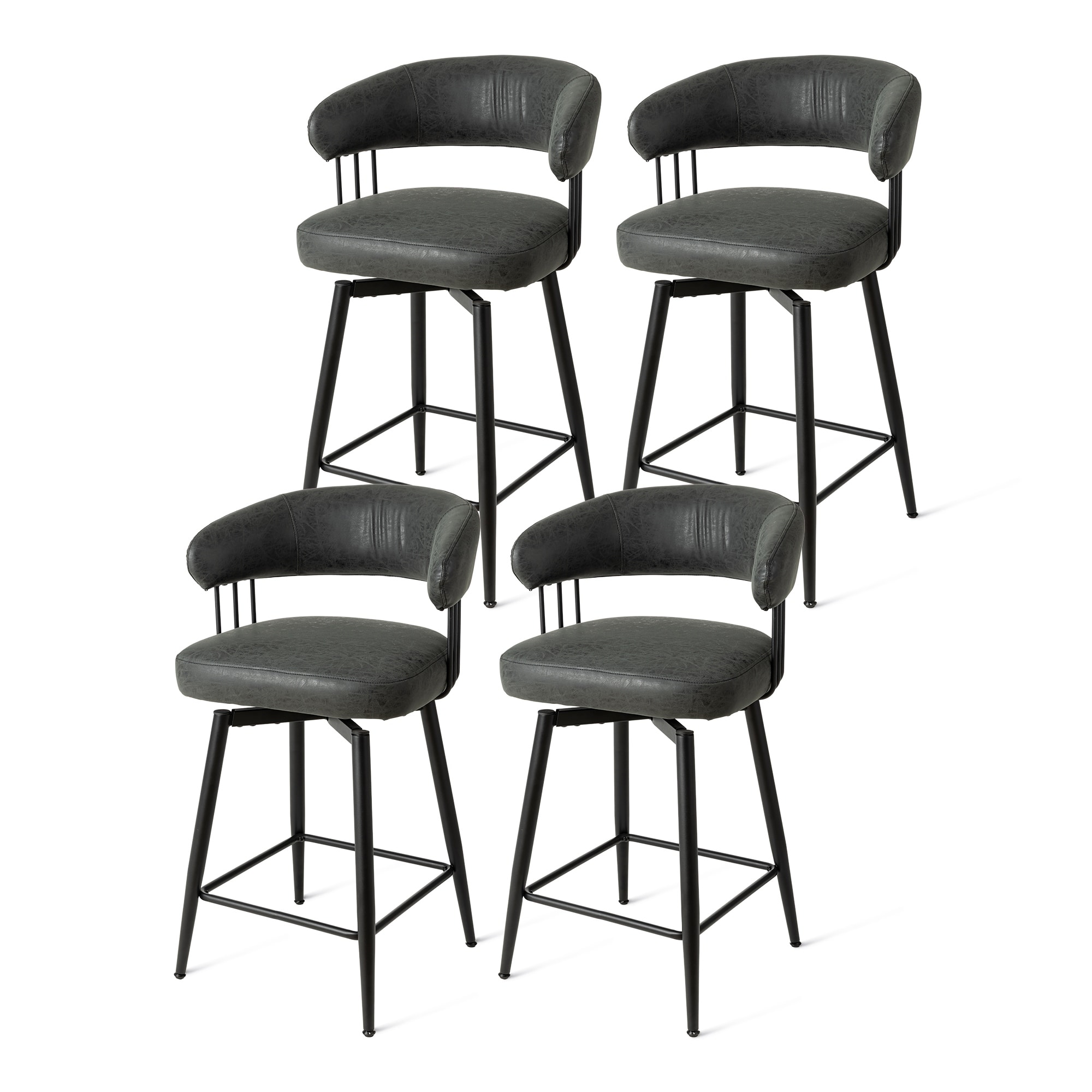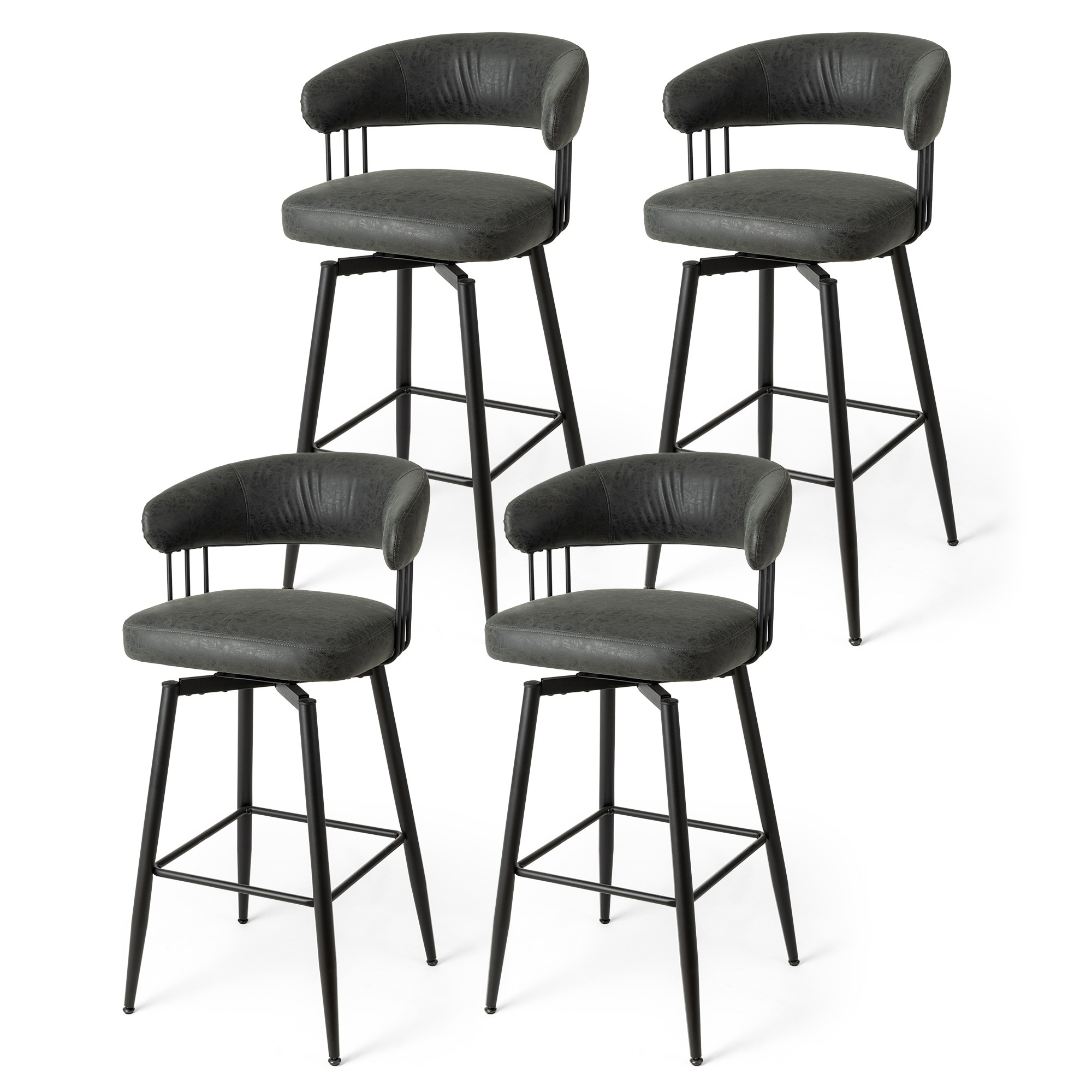 26"/29" Faux Leather Upholstered Bentwood Swivel Counter/ Bar Stools, Set of 2/4