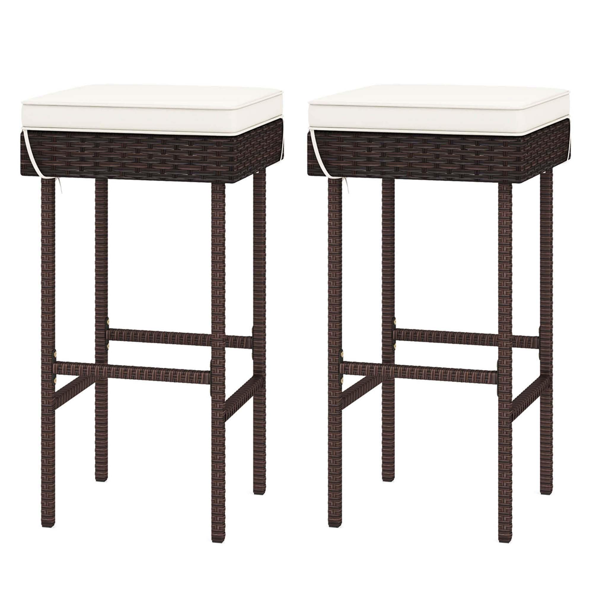 Gymax 2PCS Rattan Barstools Patio Wicker Bar Height Chairs w/ Footrest