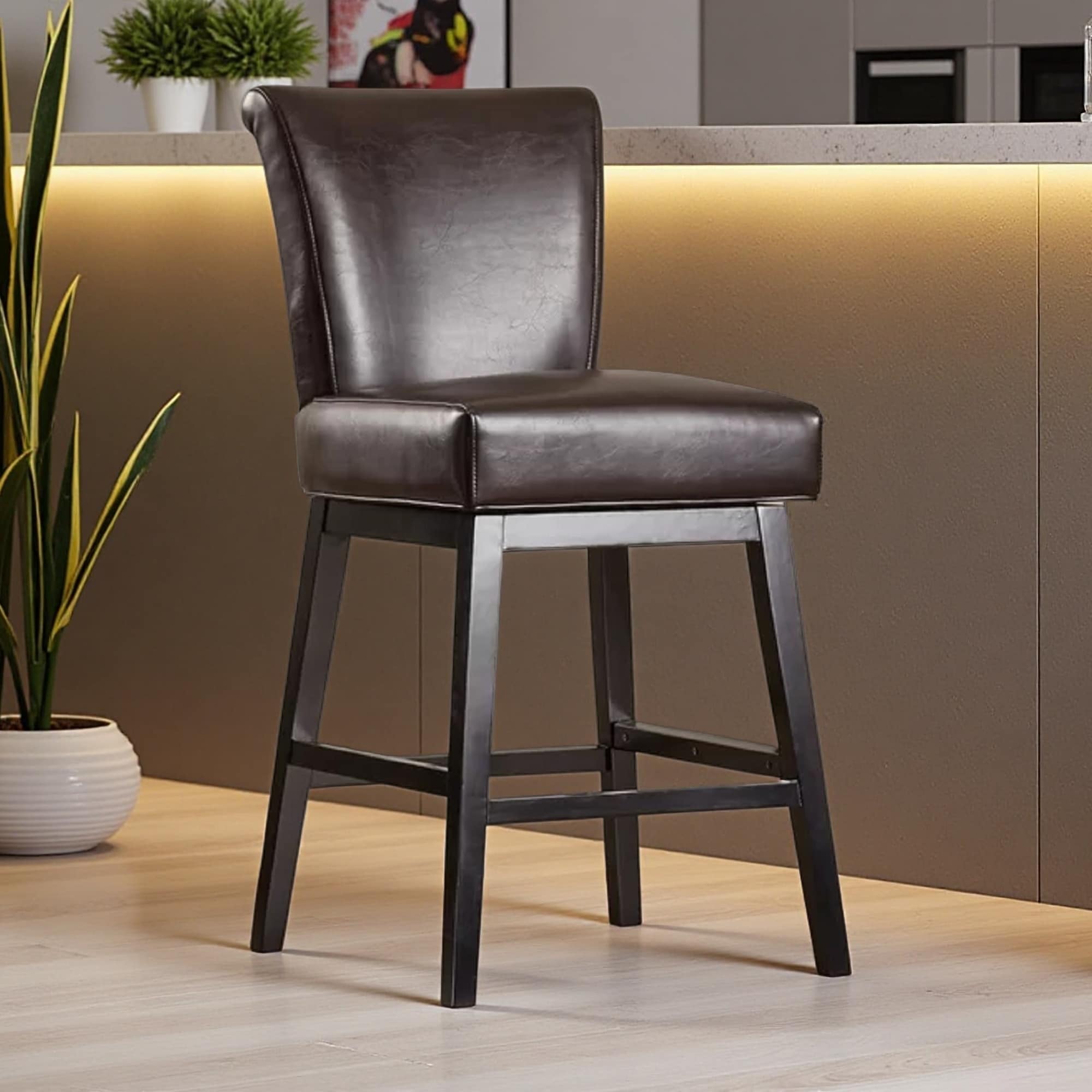 Fabric Swivel Counter Stool with Solid Wooden Legs and Padded Seat for Living Room, Bedroom, or Home Office