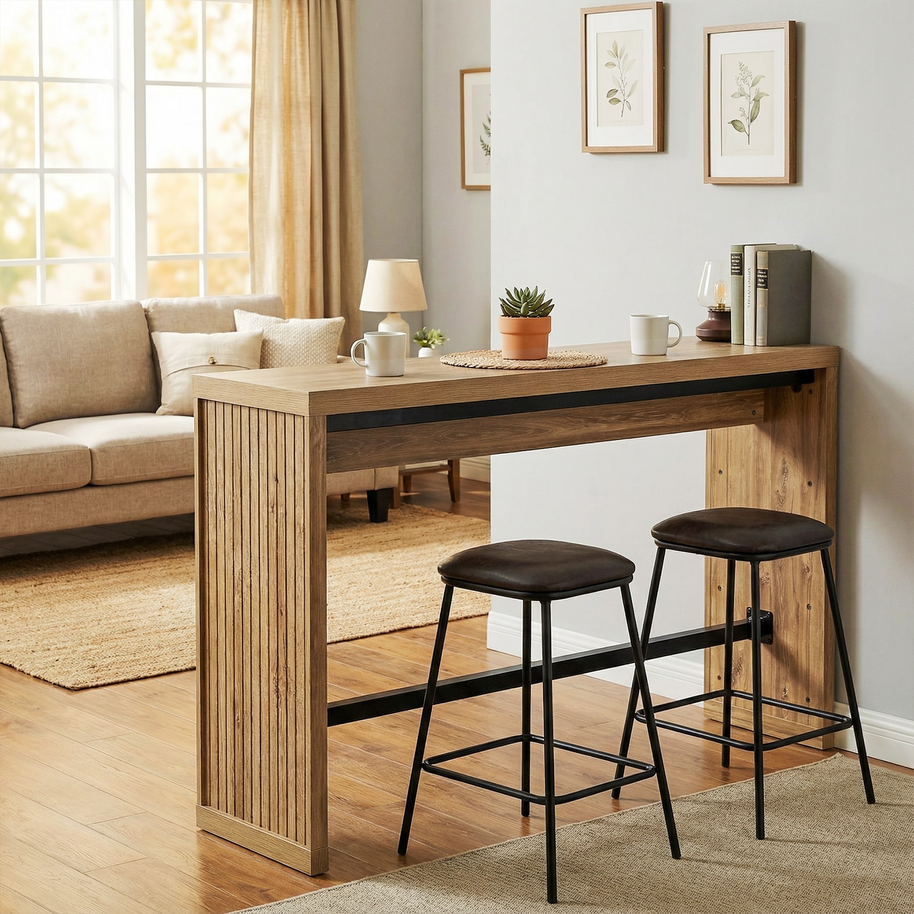 Modern 50-Inch Wood Grain Bar Table with Double Drawers for Living Room