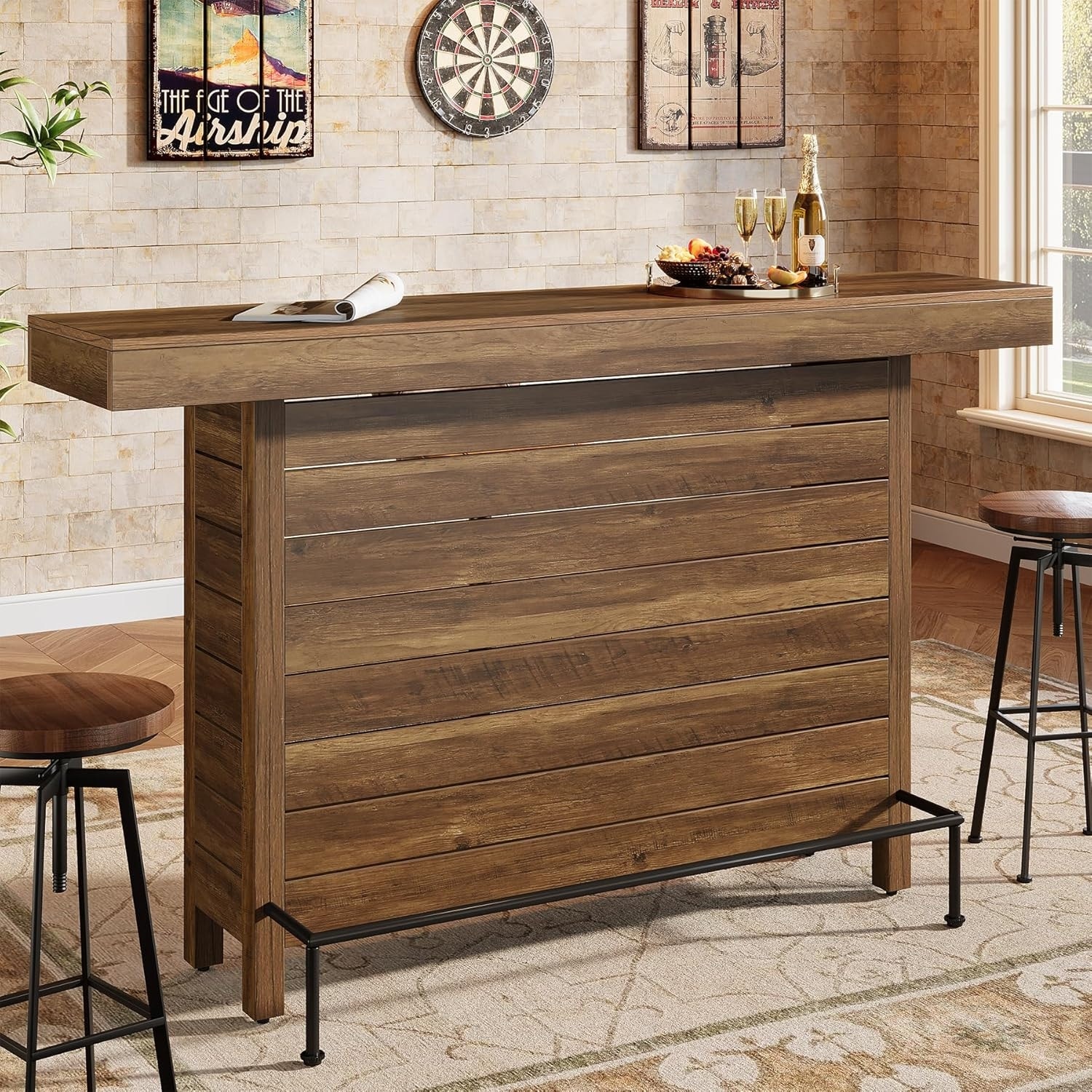 63" Industrial 3-Tier Bar Table, Wooden Rectangular Home Bar Unite for Home Kitchen, Living Room