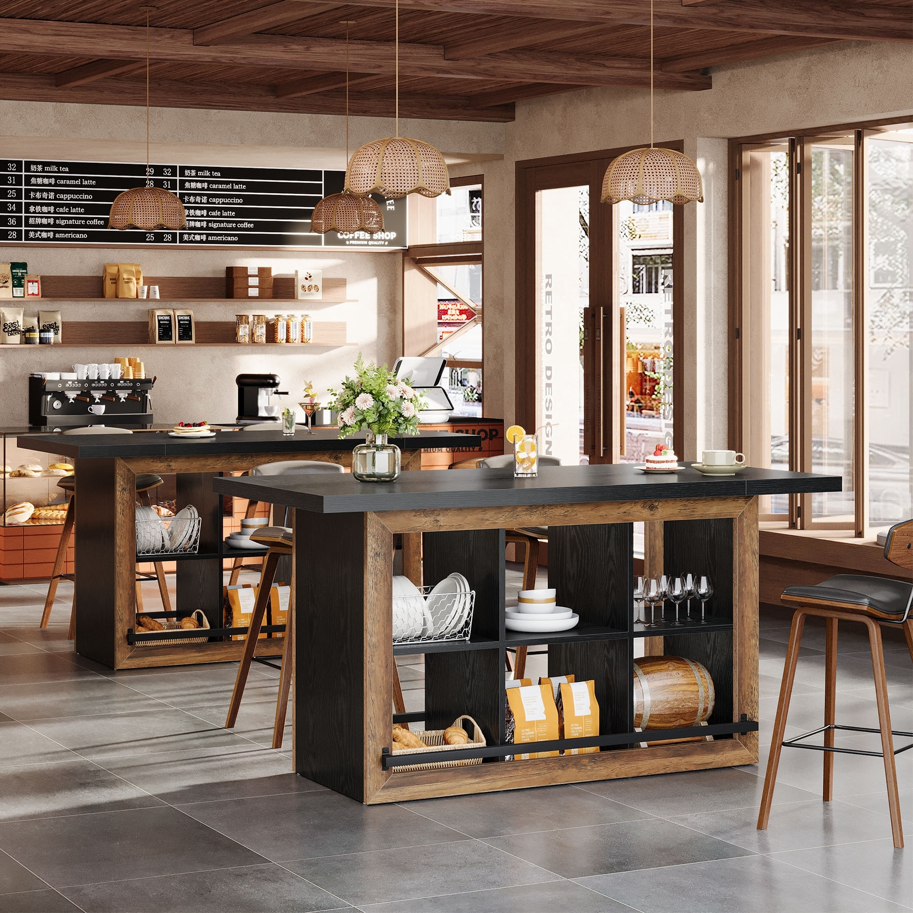 Bar Table with Storage, 62.6" Rectangular Home Bar Cabinet Unit - N/A