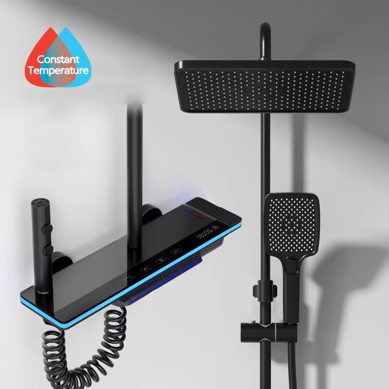 Luxury Smart Shower System With LED Lights And Digital Thermostat Full Set Glass Panel Faucet white Hot Cold