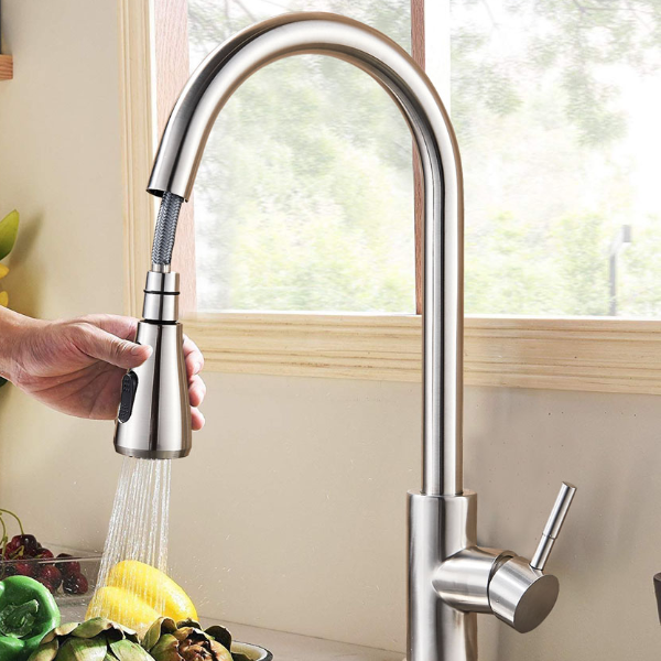 Kitchen Sink Mixer Tap Stream, Flexible Pull Out Nozzle, Black Hot Cold Water Taps, Sprayer Head Deck white