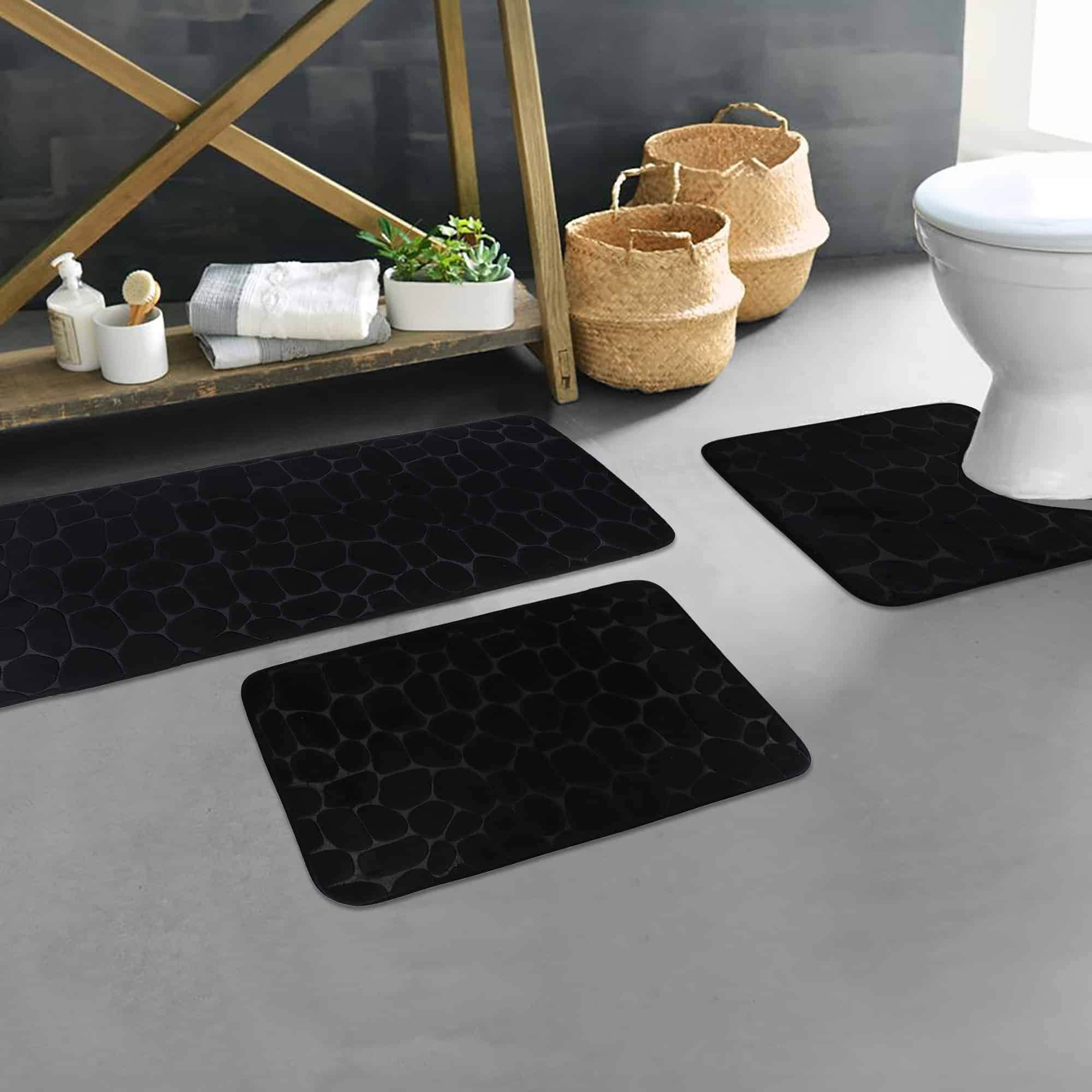 Memory Foam Bathroom Rugs Set 3 Piece Pebble Stone