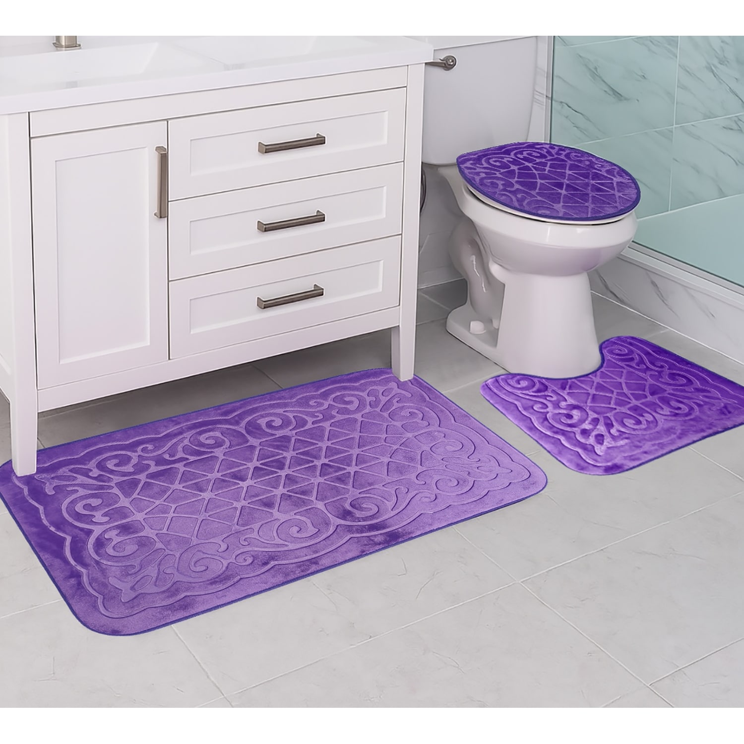 3 Piece Purple Ultra Soft Thick Memory Foam Non-Slip Absorbent Bathroom Bath Mat Set