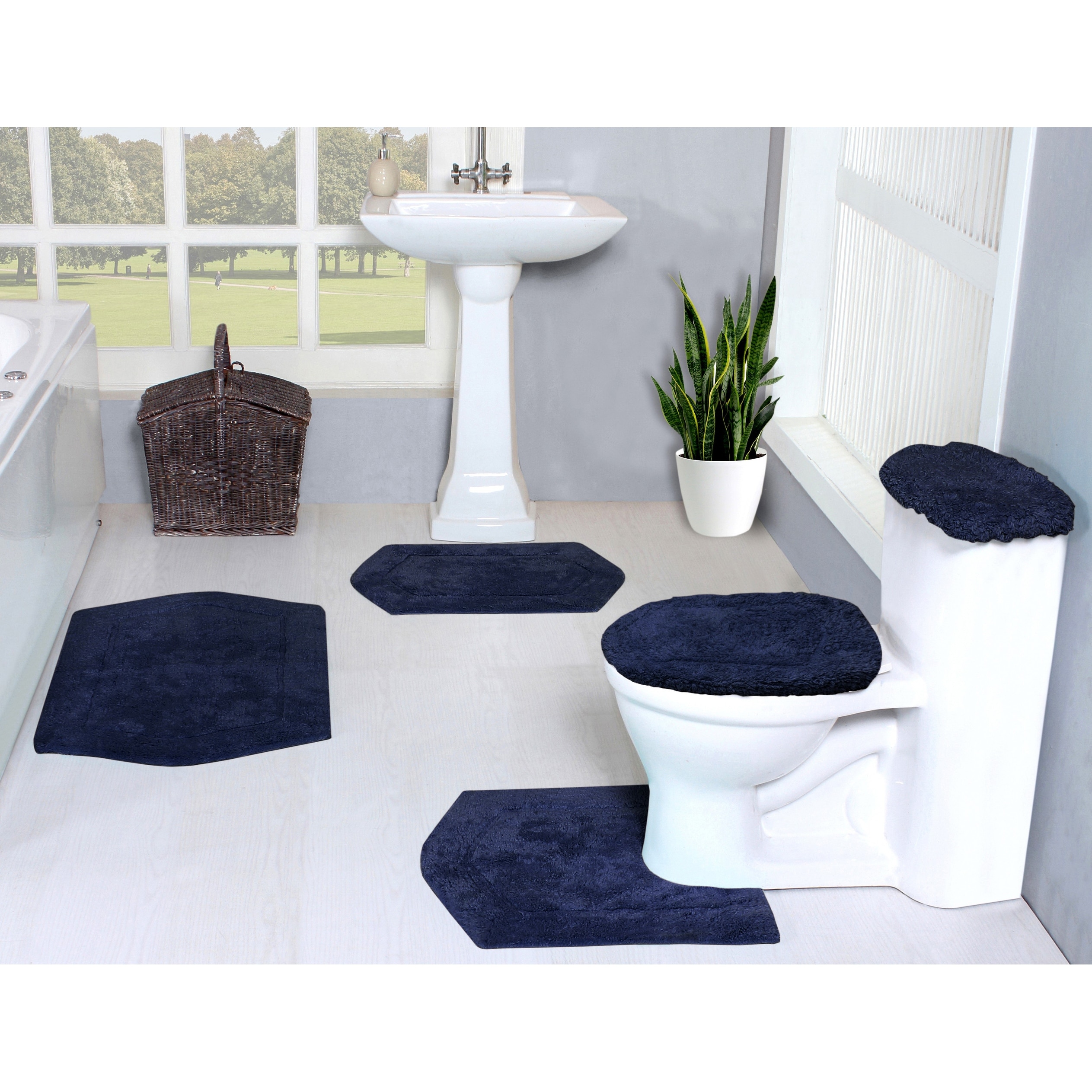 Waterford Collection 100% Cotton Non-Slip Bathroom Rug Set, Machine Washable Bath Rug, 5 Piece Bath Mat Set with Tank Lid Cover