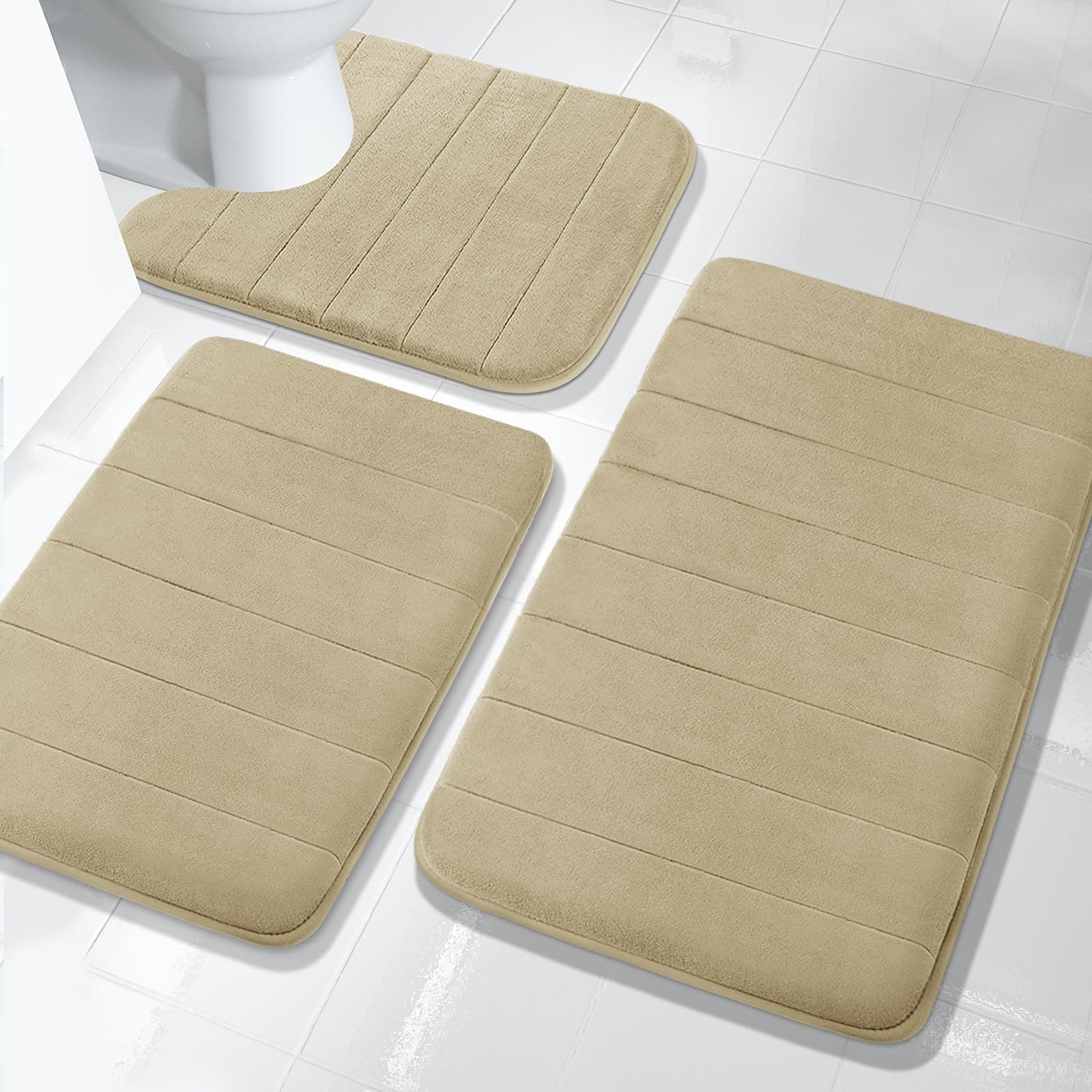 3 Pieces Memory Foam Bath Mat Sets, 31.5 x 19.8 + 17x24 and U-Shaped for Bathroom Rugs,Soft Comfortable, Water Absorption