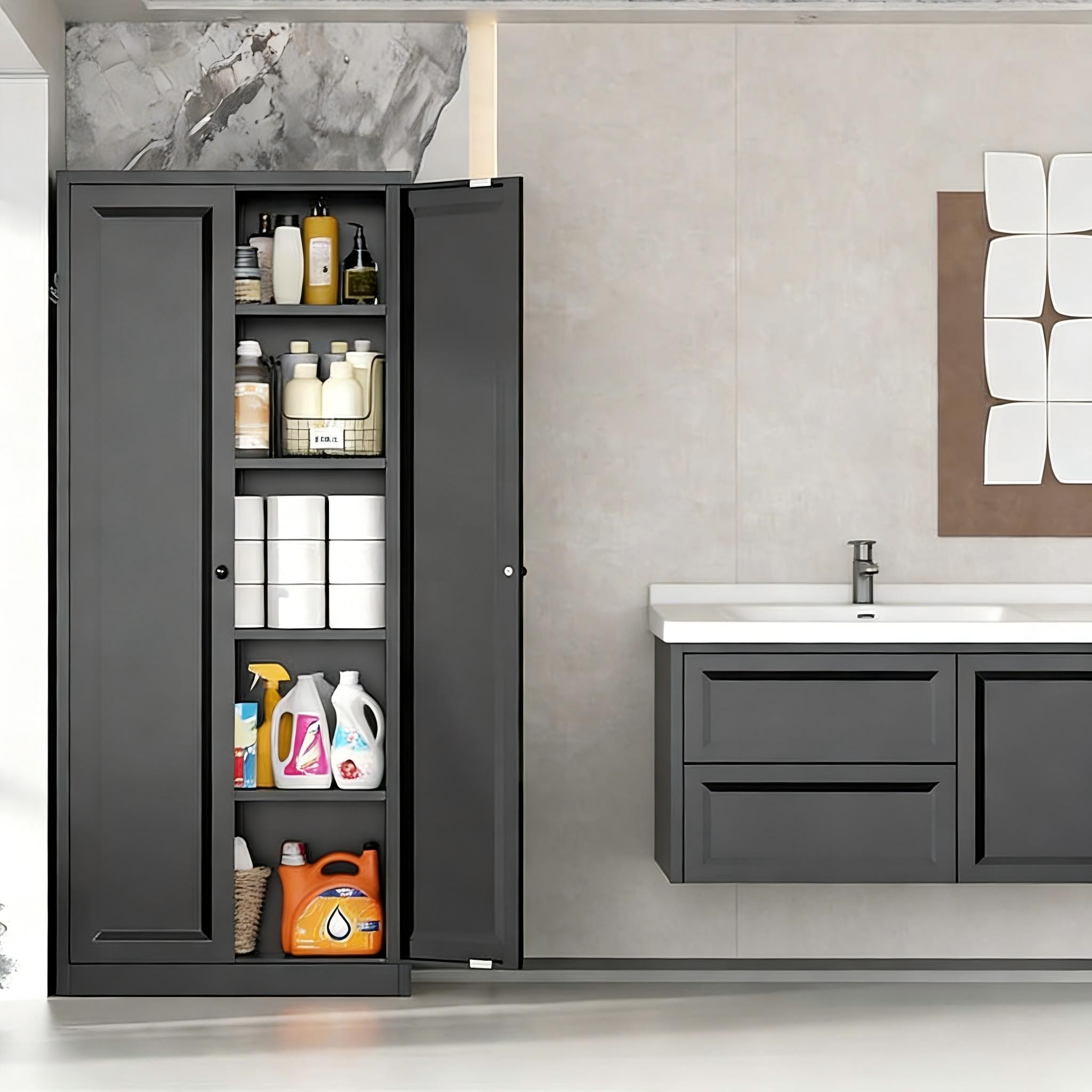 63" Tall Metal Bathroom Storage Cabinet with 2 Doors and 4 Shelves